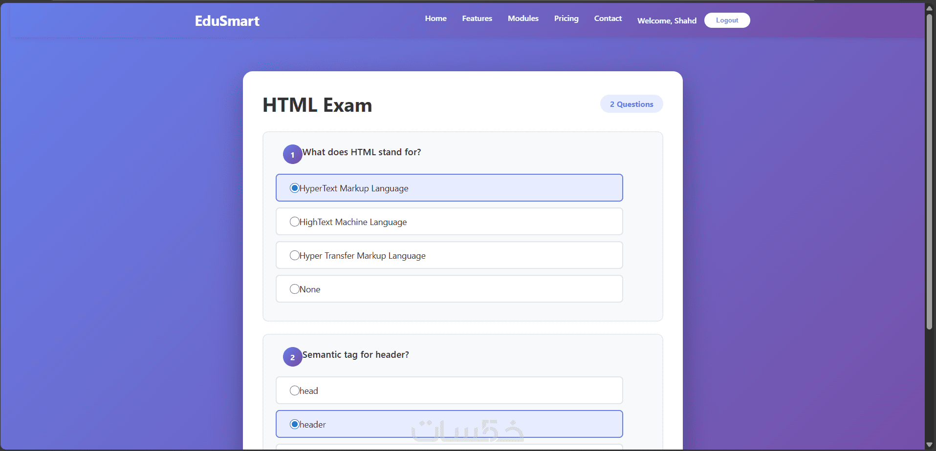 أنا شهد هشام، مطورة Frontend، أقدّم لك تصميم وتنفيذ منصة تعليمية ذكية باستخدام