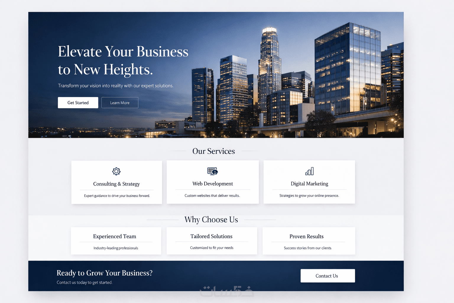 - صفحة هبوط (Landing Page) كاملة وجاهزة للاستخدام (مكوّنة من 3 أقسام رئيسية) .