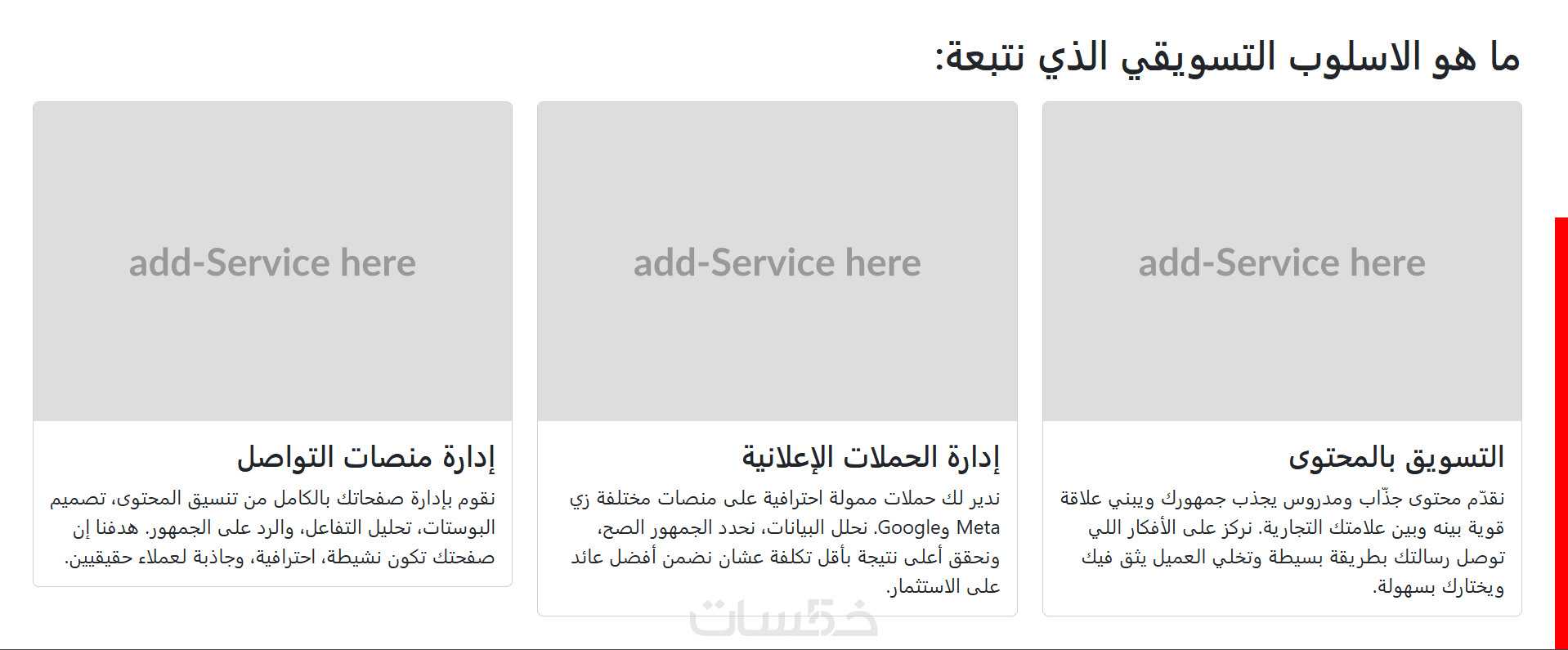 - أي إضافات أخرى (أقسام إضافية – تعديلات أكثر – ماكتب خاصة) يتم احتسابها كخدمة إضافية.
