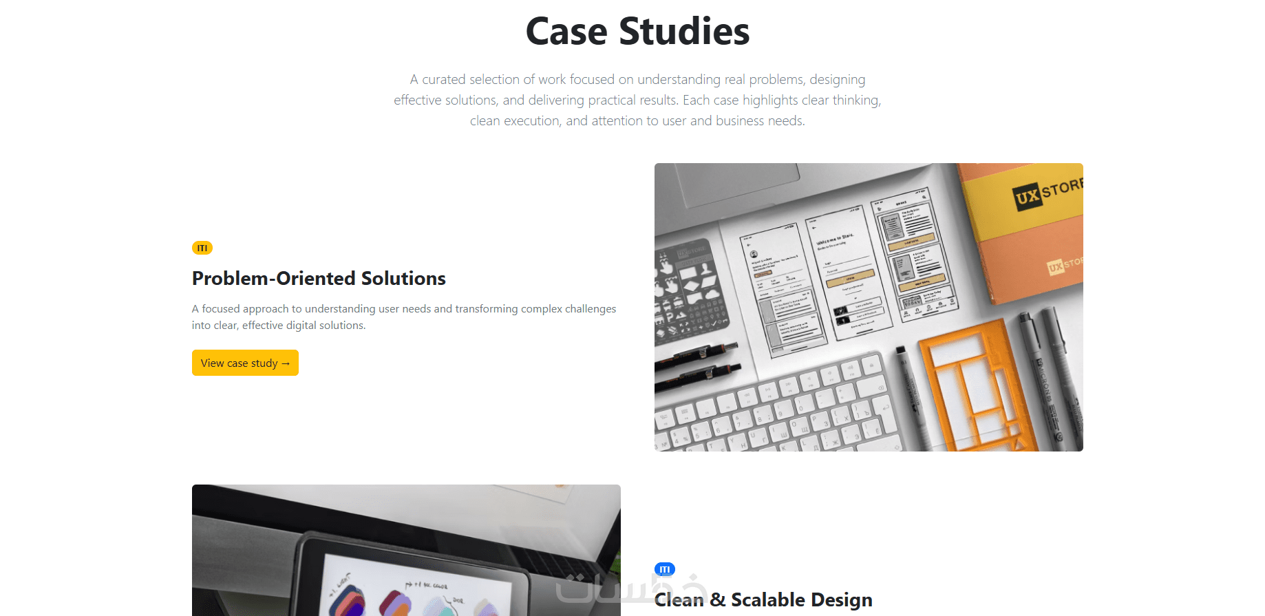 قسم (Case Studies) لشرح طريقة التفكير وحل المشكلات