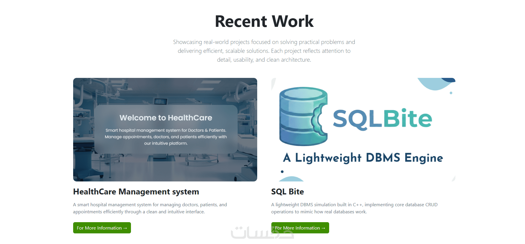 قسم (Recent Work) لعرض المشاريع الحديثة