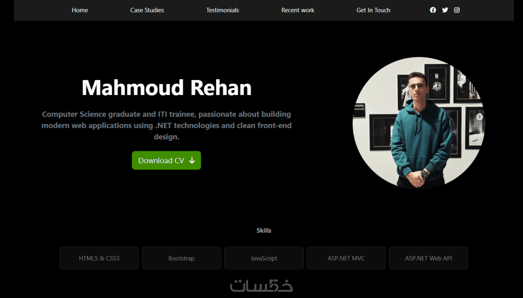 صفحة تعريف شخصية (Hero Section) لعرض المهارات والتقنيات المستخدمة