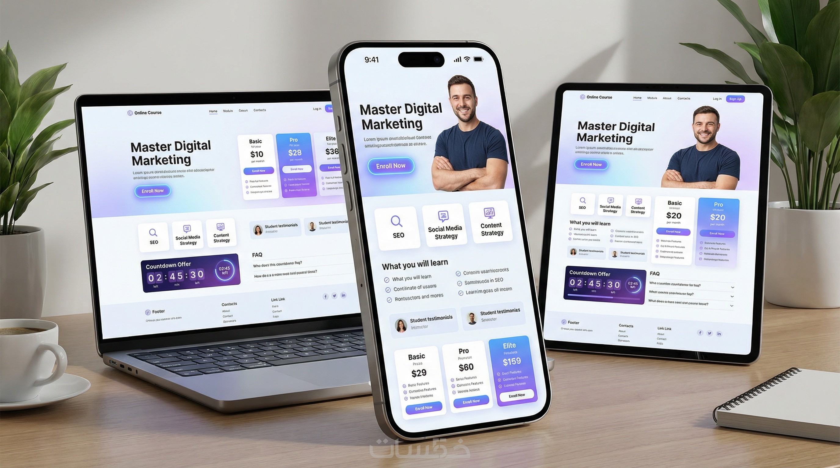 توزيع العناصر بطريقة تسويقية واضحة مع CTA قوي