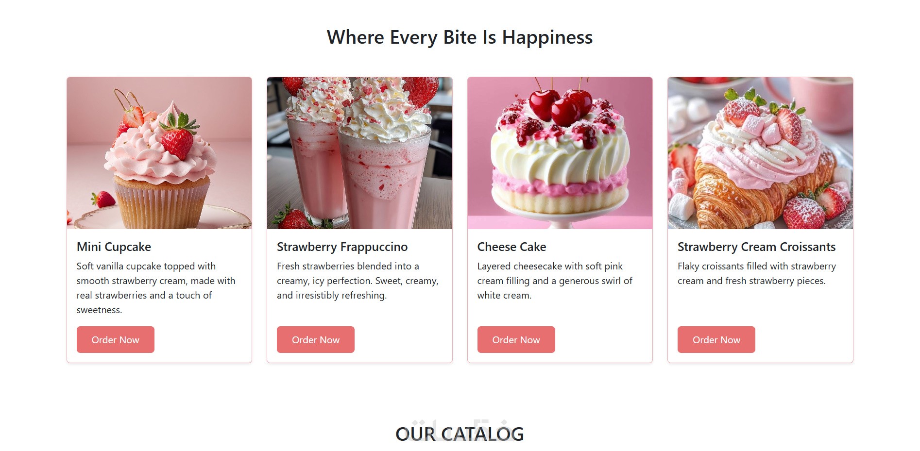 أقدم خدمة تصميم Landing Page Front-End احترافية وبسيطة لعرض الأكلات والوصفات، مناسبة للمطاعم، محلات الحلويات، أو المشاريع الصغيرة كنموذج أولي لموقع إلكتروني.