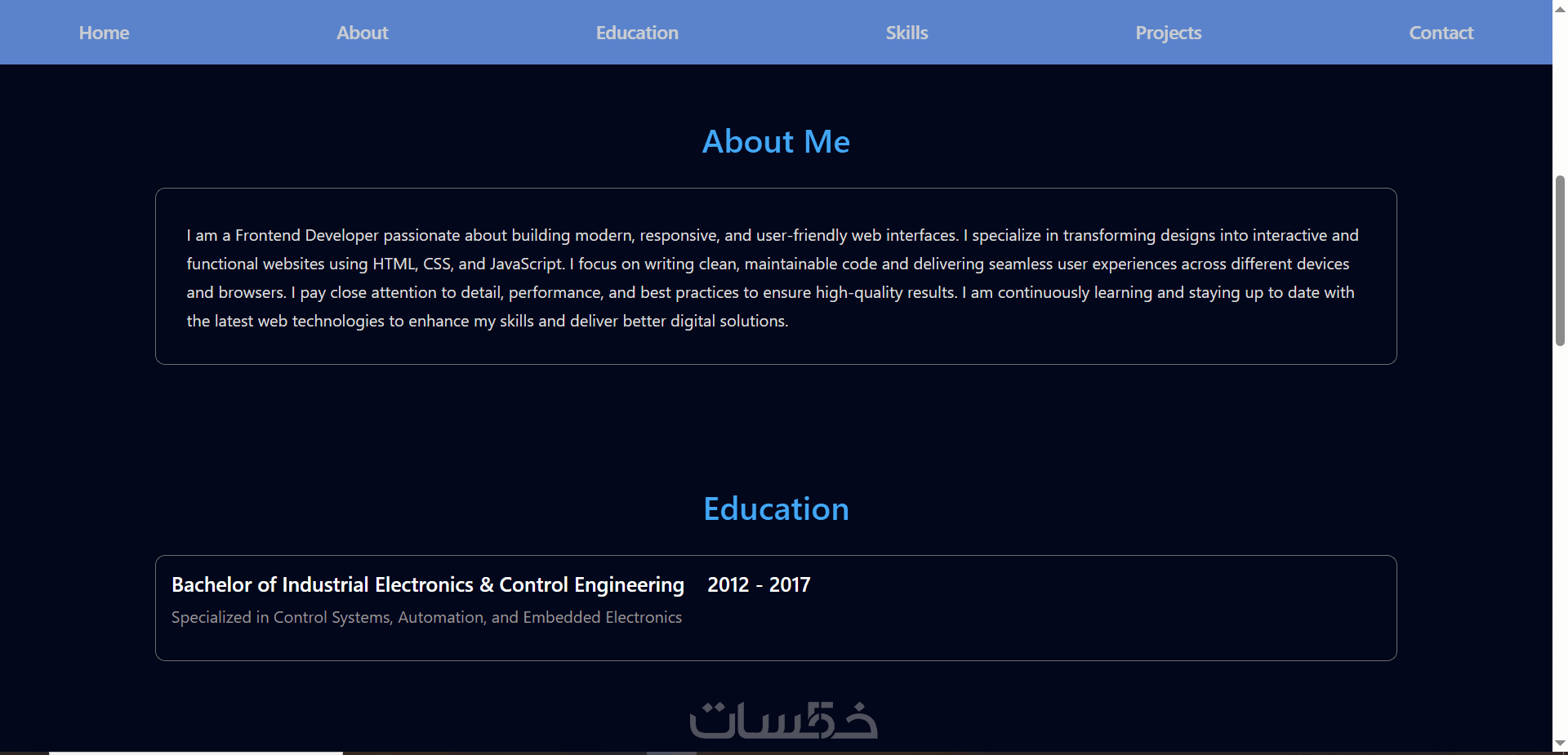 -قسم يعرض نبذه تعريفية عنك (About Me).