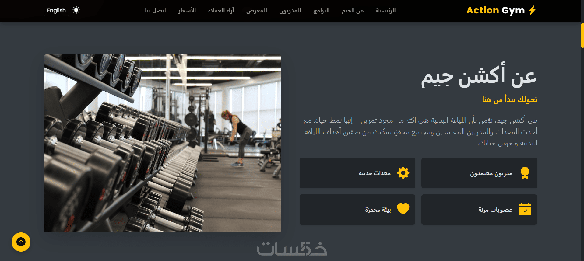 صفحة عن الجيم (الرؤية – المدربين – التجهيزات)