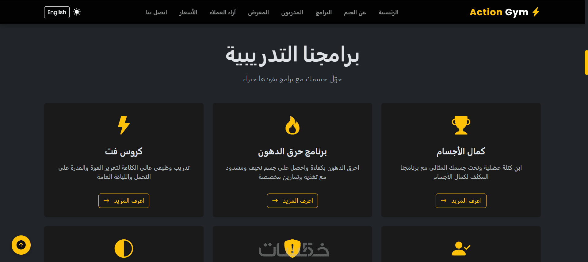 صفحة البرامج والخدمات (تخسيس – كمال أجسام – كروس فيت…)
