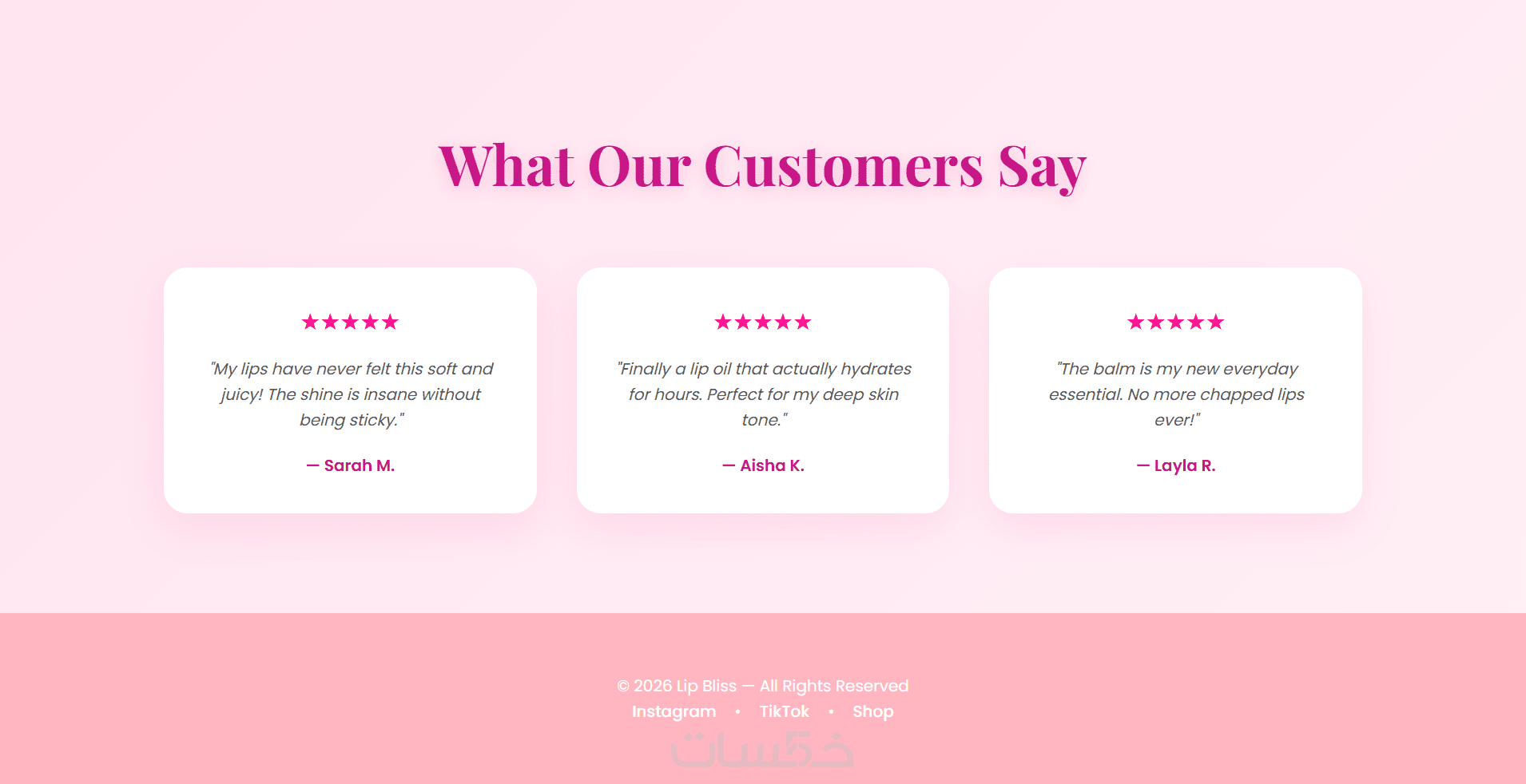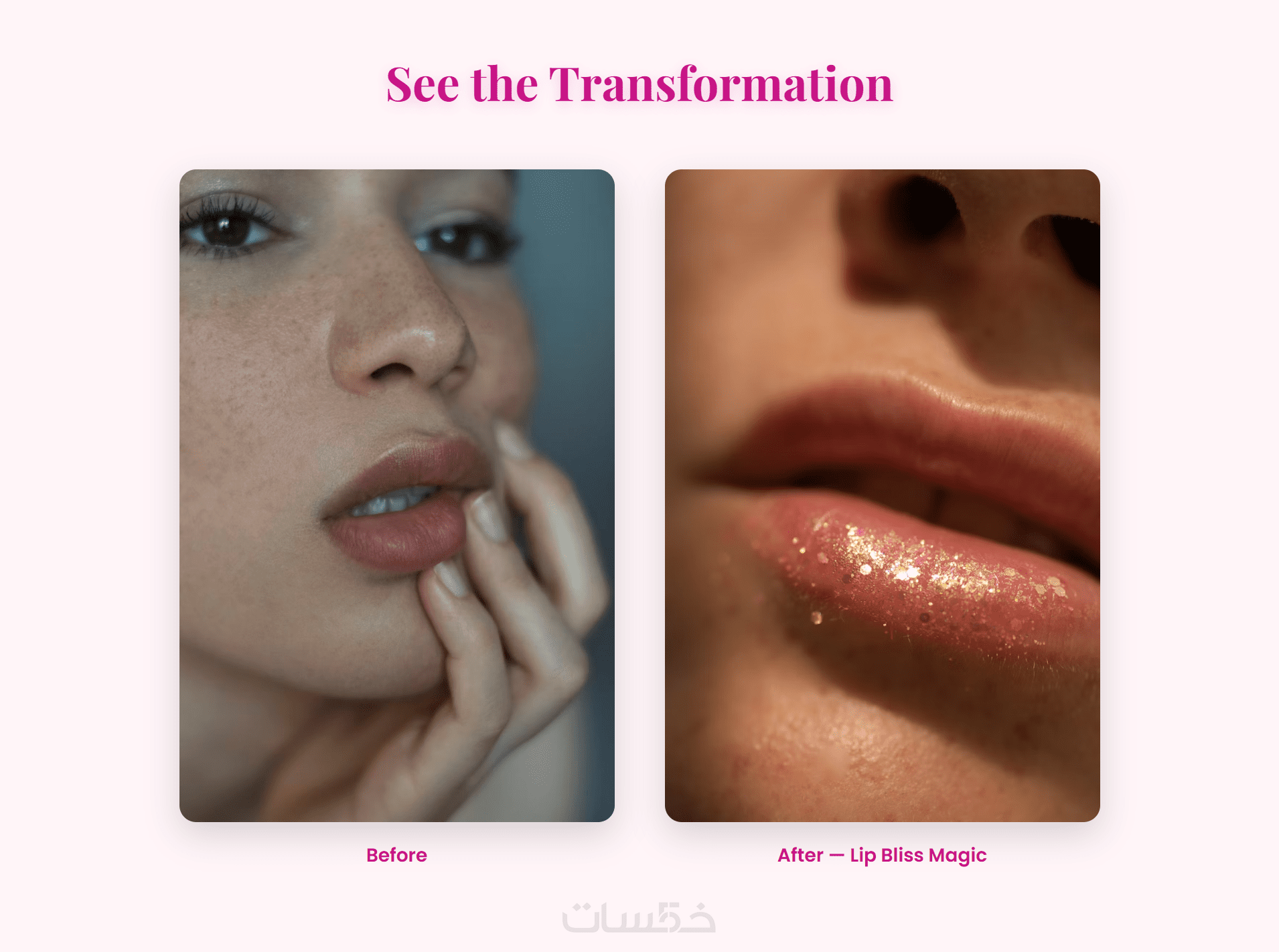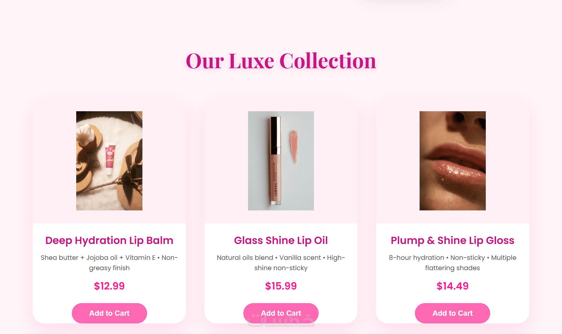3- Featured Products: عرض المنتجات الرئيسية (Lip Balm – Lip Oil – Lip Gloss).
