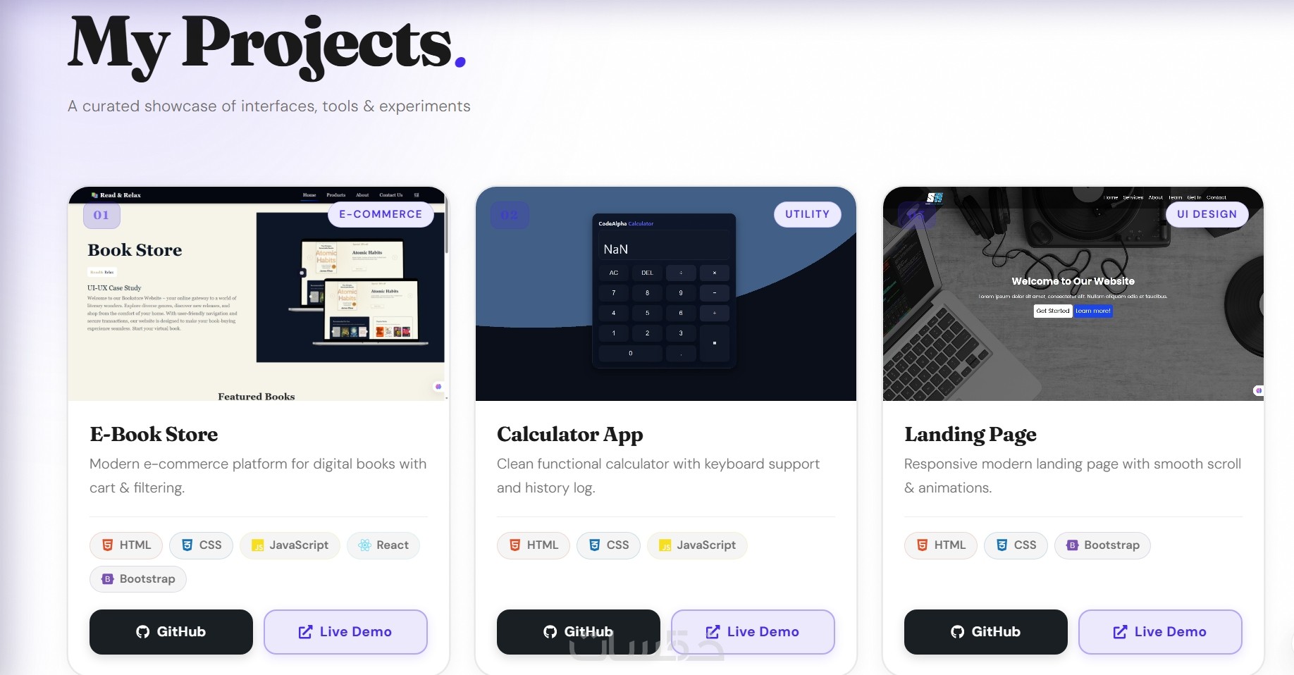 ملفات المشروع كاملة (HTML – CSS – JavaScript – React)