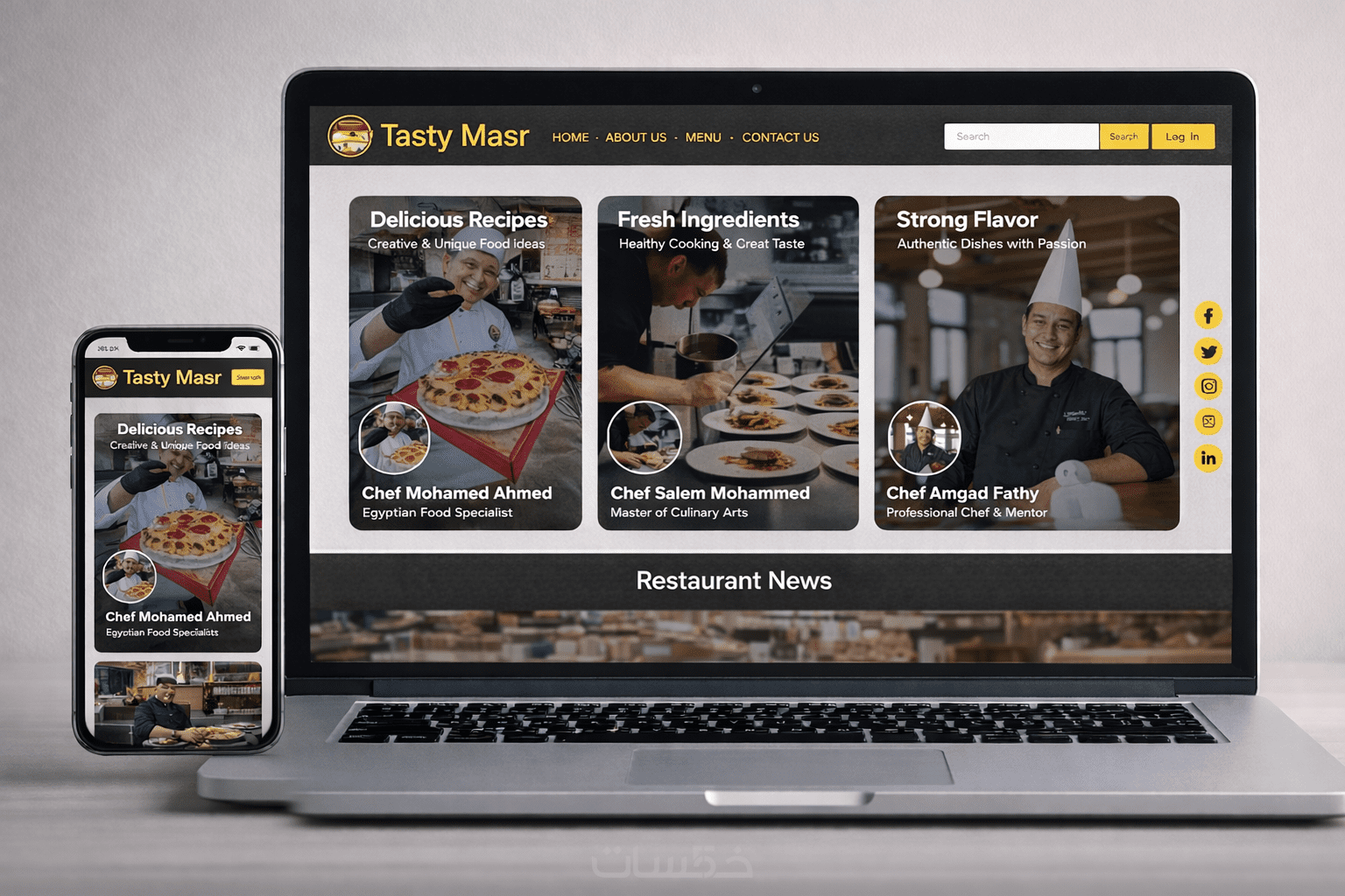 نسخة متجاوبة تعمل بكفاءة على جميع الأجهزة (موبايل، تابلت، ديسكتوب).