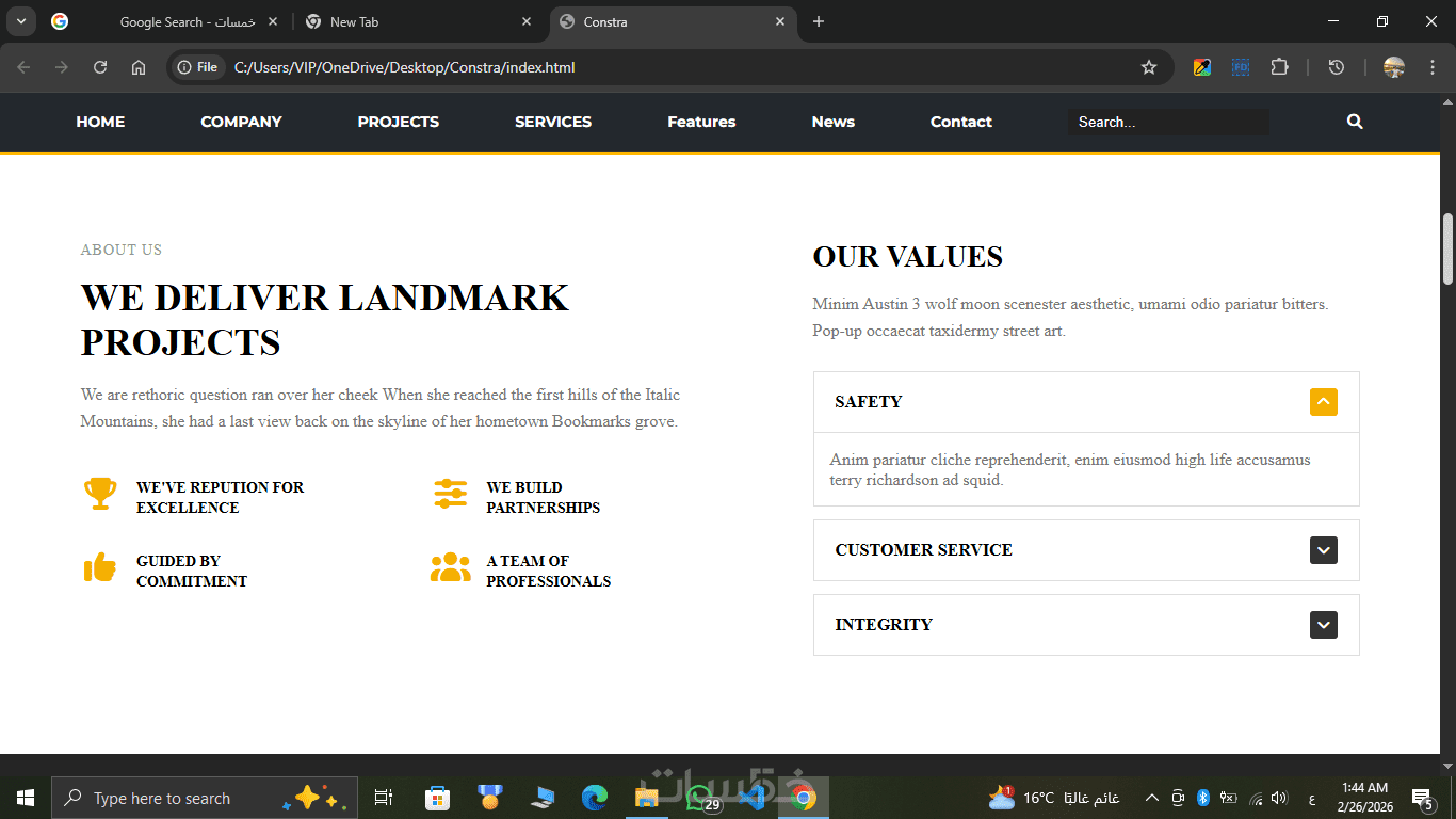 أنا أقدم لك تصميم وتطوير صفحة هبوط عصرية وجذابة باستخدام HTML, CSS, JavaScript بكود نظيف ومنظم يضمن سرعة الأداء وتجربة مستخدم مثالية.