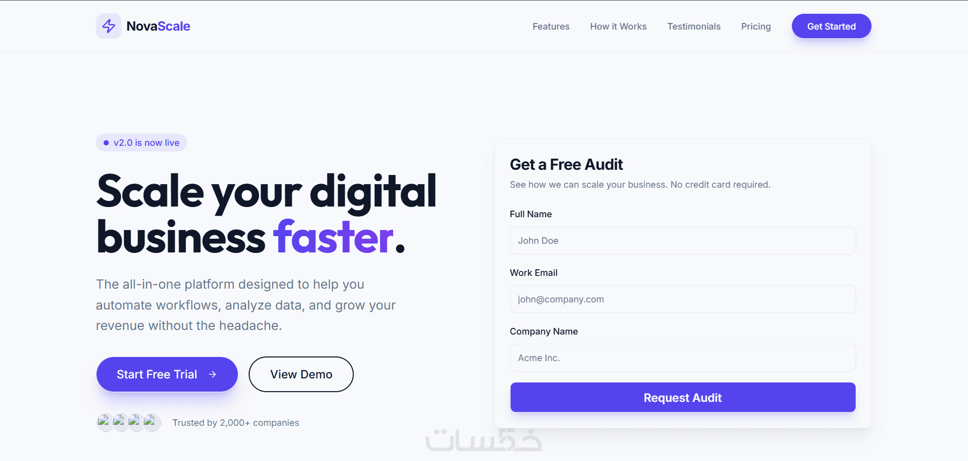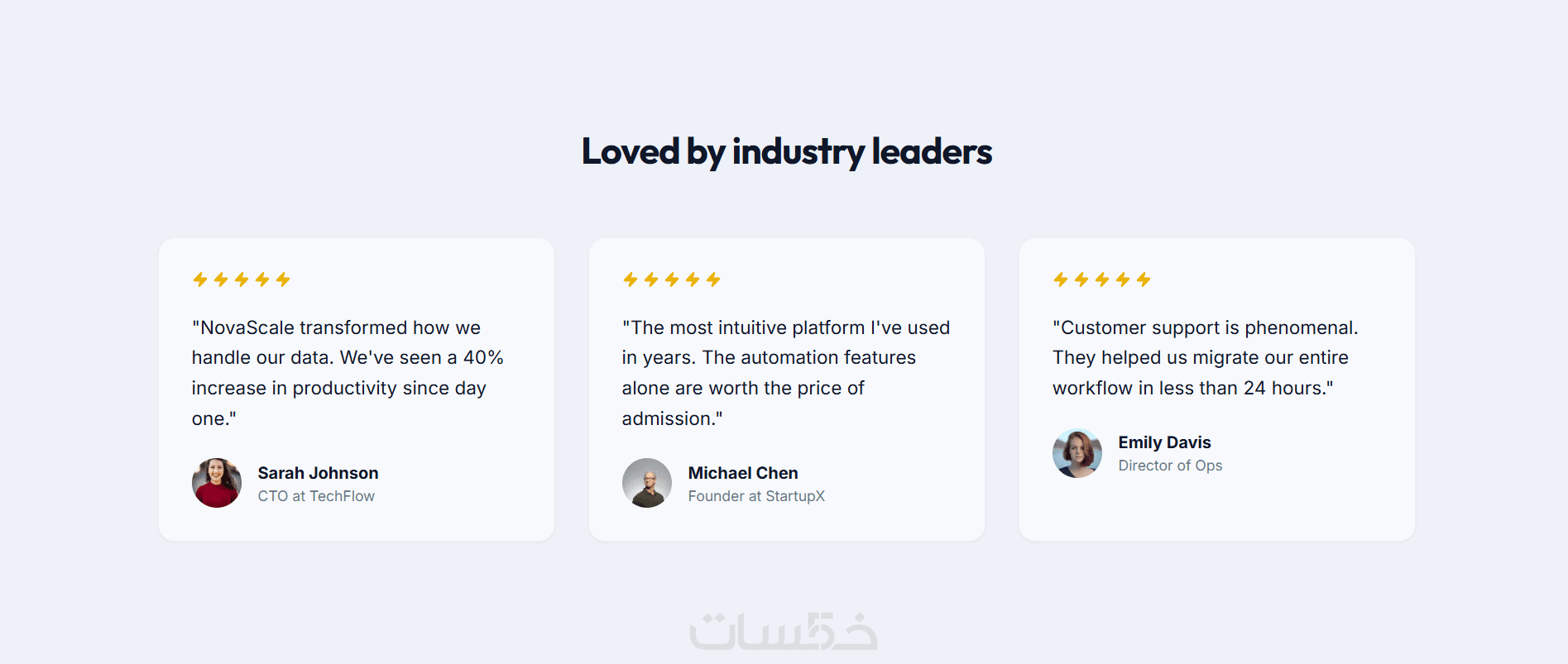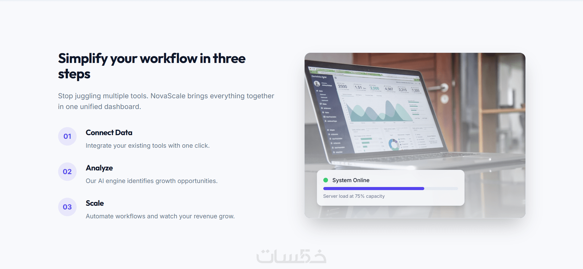 قسم الهيرو (Hero Section): واجهة جذابة تحتوي على عنوان قوي وزر اتخاذ إجراء (CTA) لزيادة التحويلات.