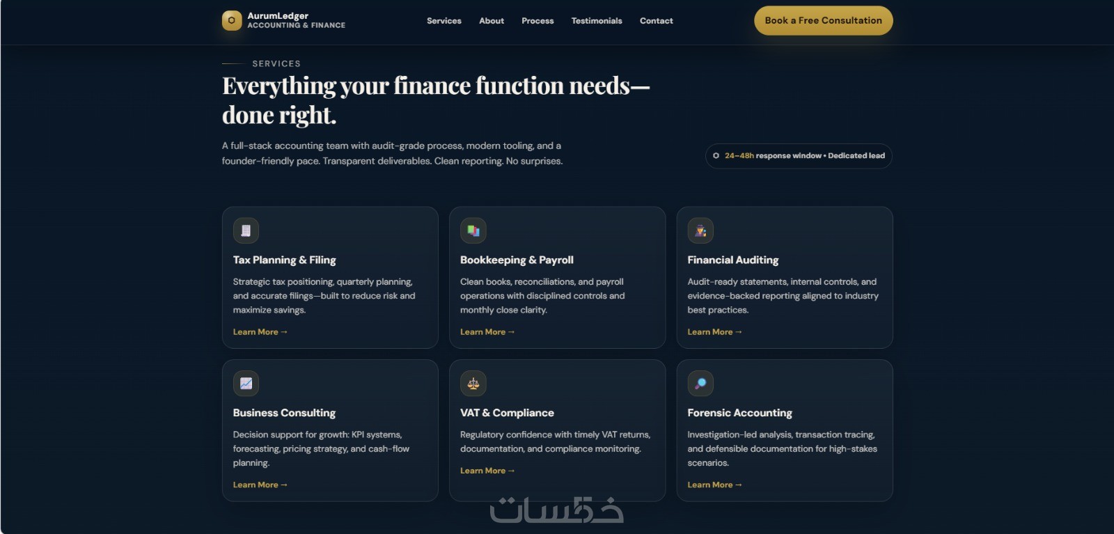 صفحة متكاملة بكل الأقسام الأساسية ومهيأة للنشر مباشرة بدون أي تعديلات إضافية والاقسام كالتالي :
