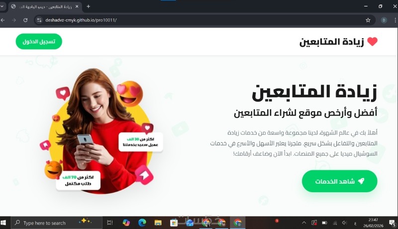 مقابل سعر الخدمة الاساسي ستحصل على صفحة هبوط (Landing Page) بتصميم عصري، كود نظيف، وأداء سريع يضمن لك أفضل تجربة مستخدم على جميع الأجهزة.