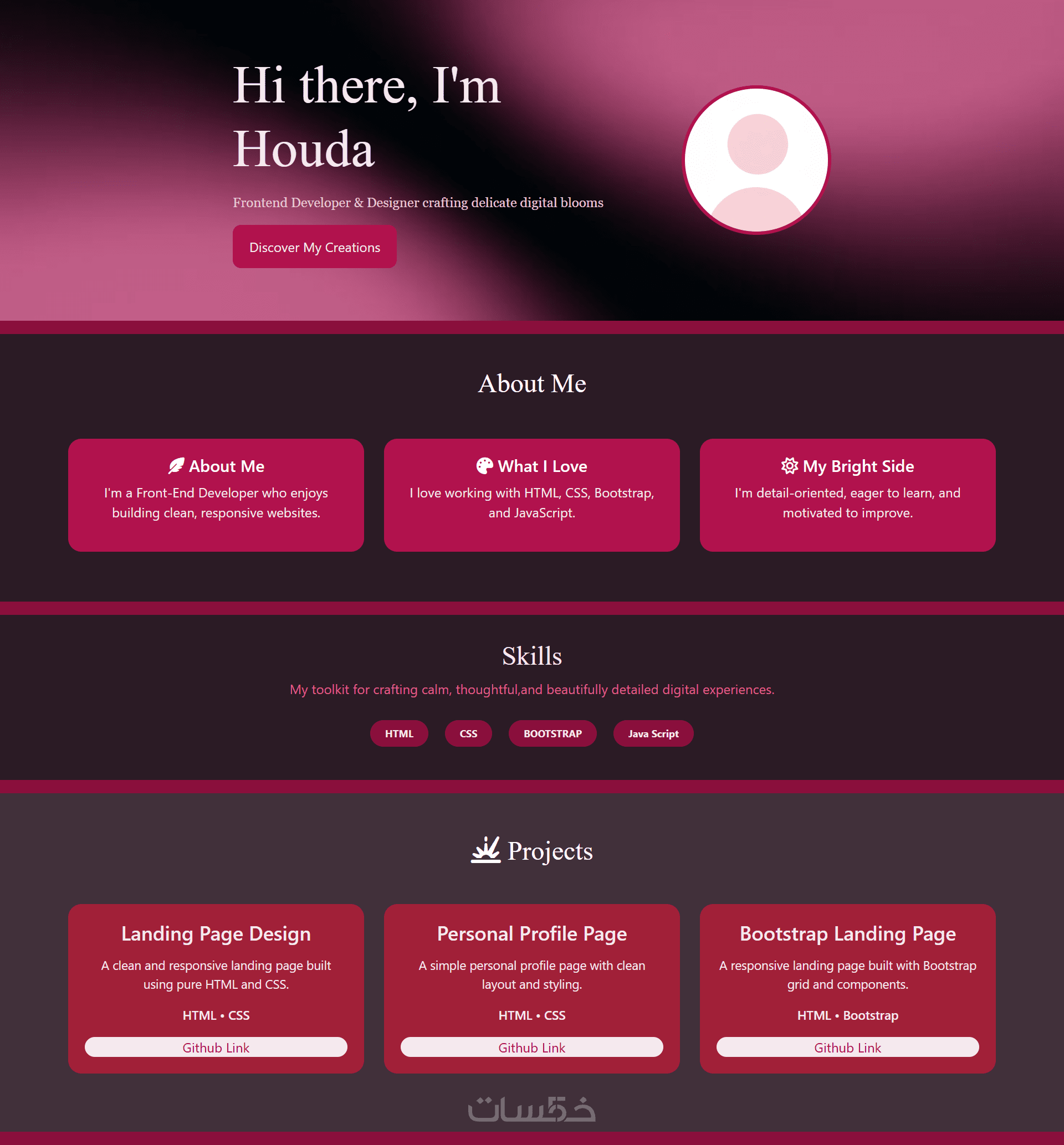 معك هدى ، مطورة واجهات أمامية أمتلك خبرة في تصميم وتطوير صفحات هبوط احترافية باستخدام لغة ترميز الصفحات HTML، تنسيق وتصميم الواجهات CSS ، وإطار العمل الشهير لبناء المواقع، بالإضافة إلى إضافة التفاعلات البرمجية البسيطة. أقدم لك صفحة عصرية سريعة ومتجاوبة مع جميع الأجهزة، مناسبة للمشاريع الناشئة، الشركات، المتاجر، المنتجات الرقمية، والخدمات الشخصية، مع كود منظم وسهل التعديل يعكس احترافية مشروعك بأفضل شكل ممكن.