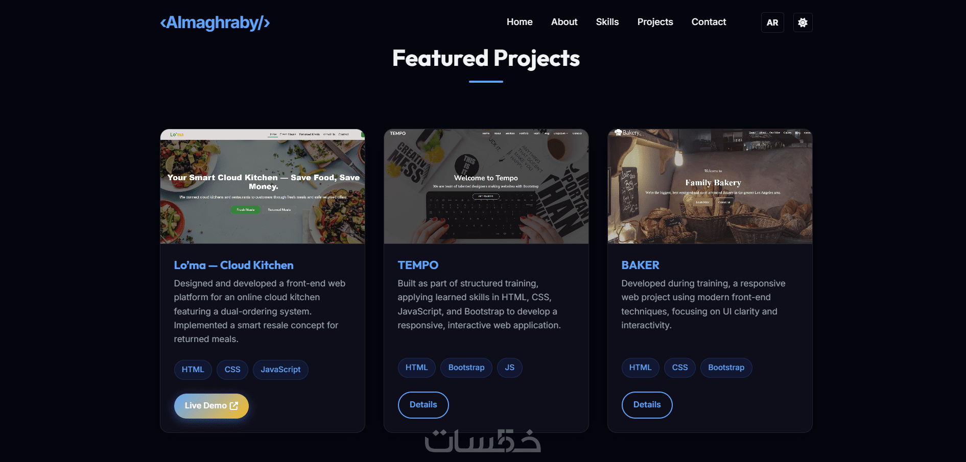 • قسم المشاريع أو الأعمال السابقة
