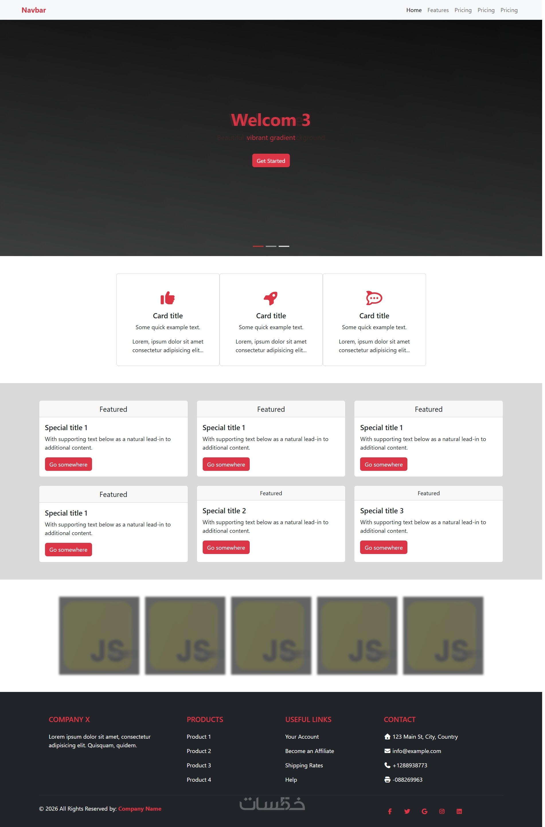 يتم تصميم أقسام الصفحة حسب احتياج المشروع، مثل: