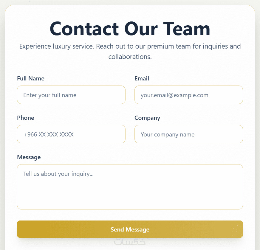 سيتم تصميم النموذج بشكل عصري ومتجاوب مع جميع الأجهزة مع تجربة استخدام سهلة وواضحة، بحيث يتم إرسال الرسائل تلقائيًا إلى بريدك الإلكتروني فور تعبئة النموذج.