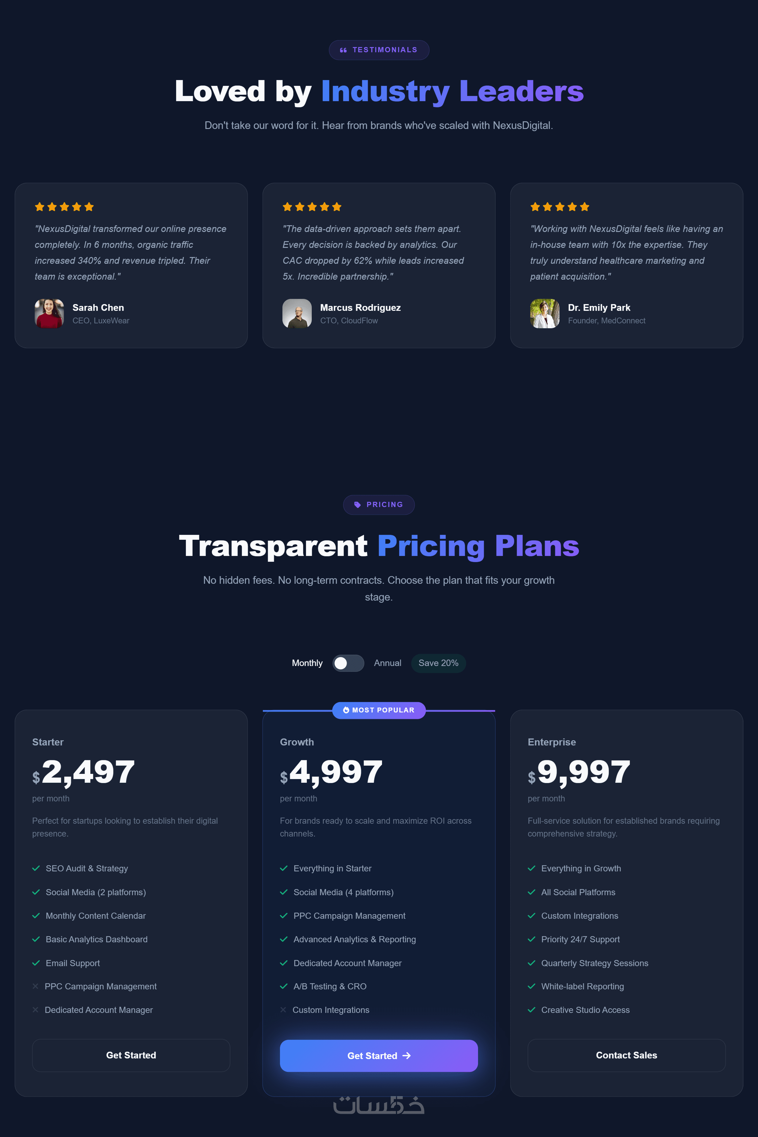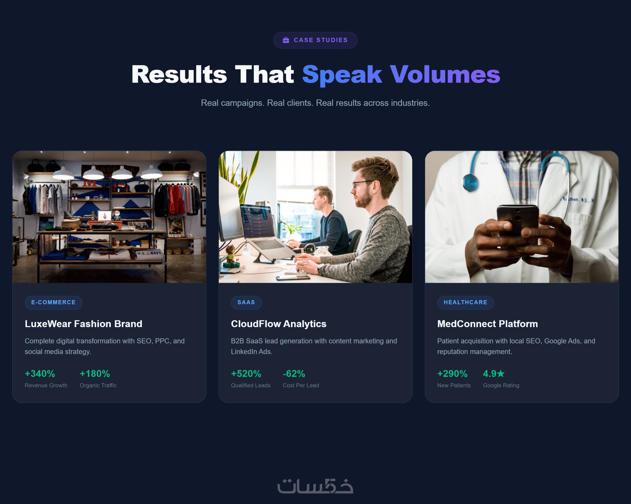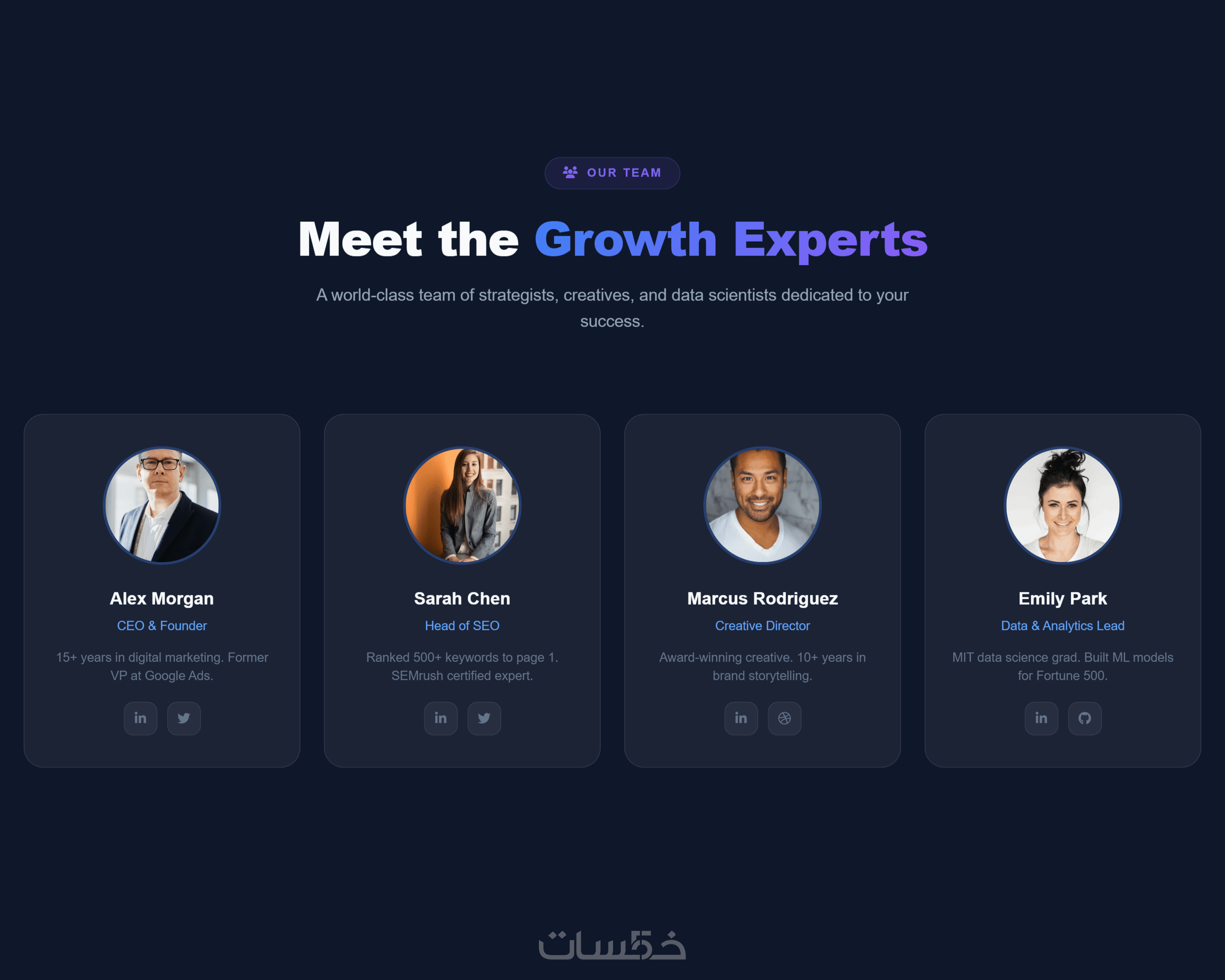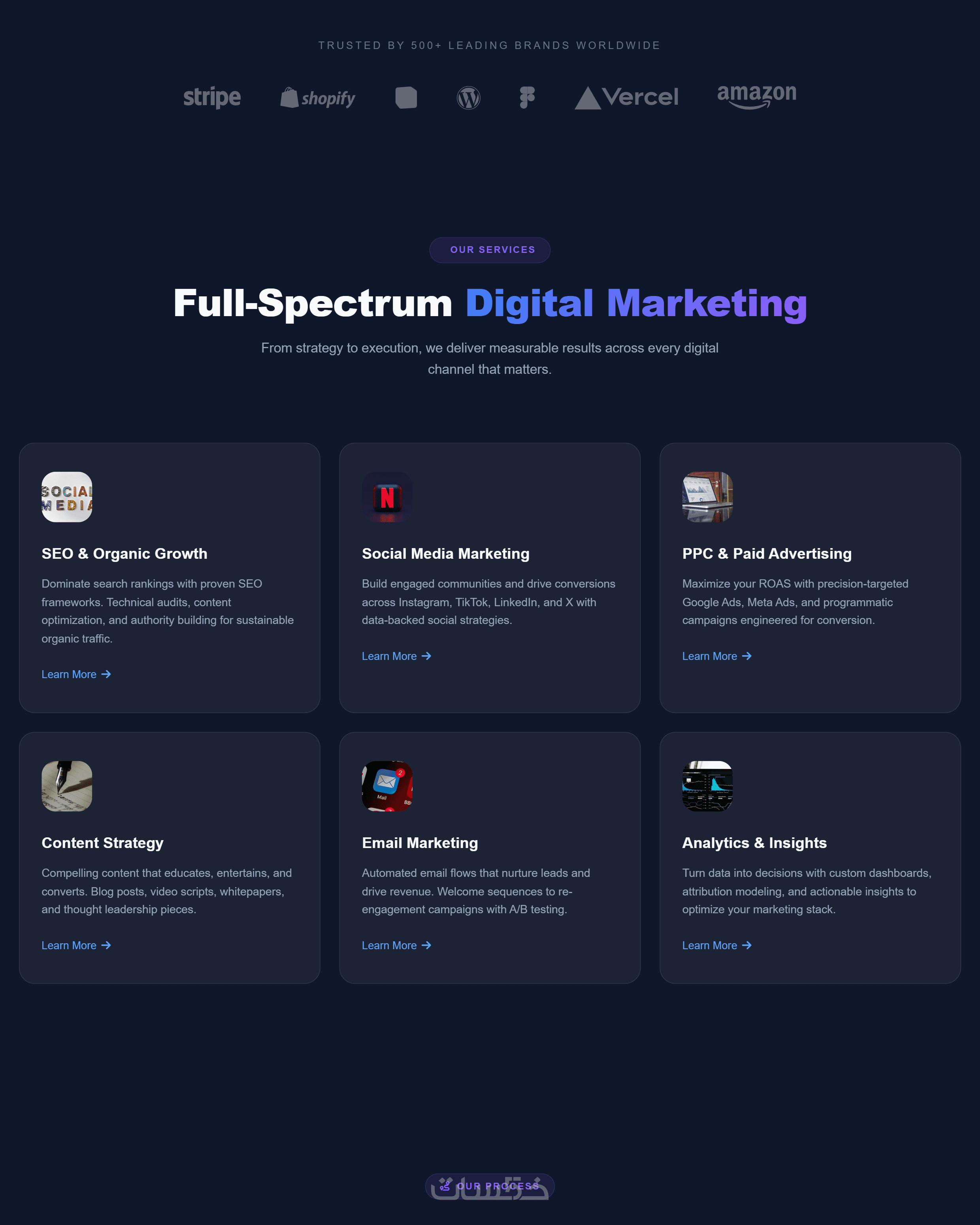 ✔ الاحترافية: استخدام تقنيات حديثة تضمن سرعة تحميل الصفحة.