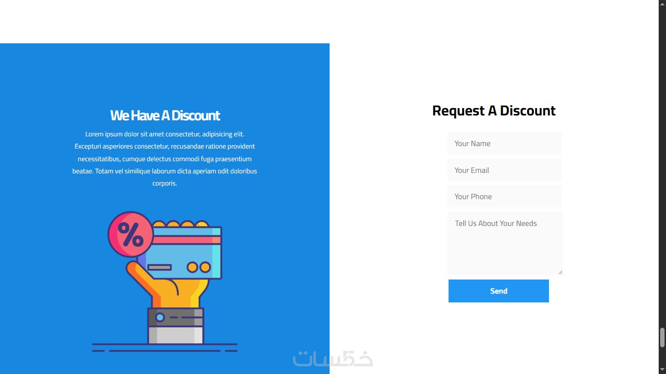 صفحة هبوط واحدة متجاوبة مع جميع الشاشات مكونة من ٤ اقسام.
