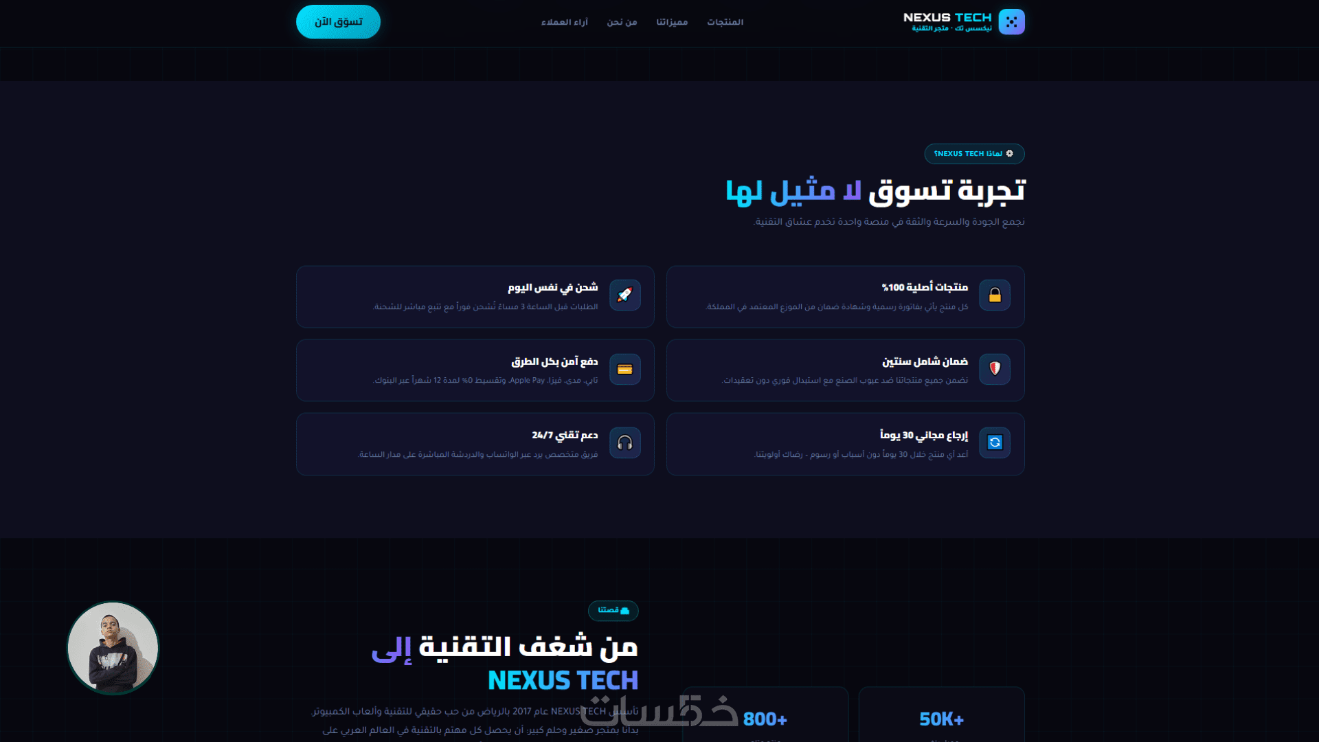 قسم رئيسي (Hero Section) يعبر عن مشروعك ويجذب الانتباه.