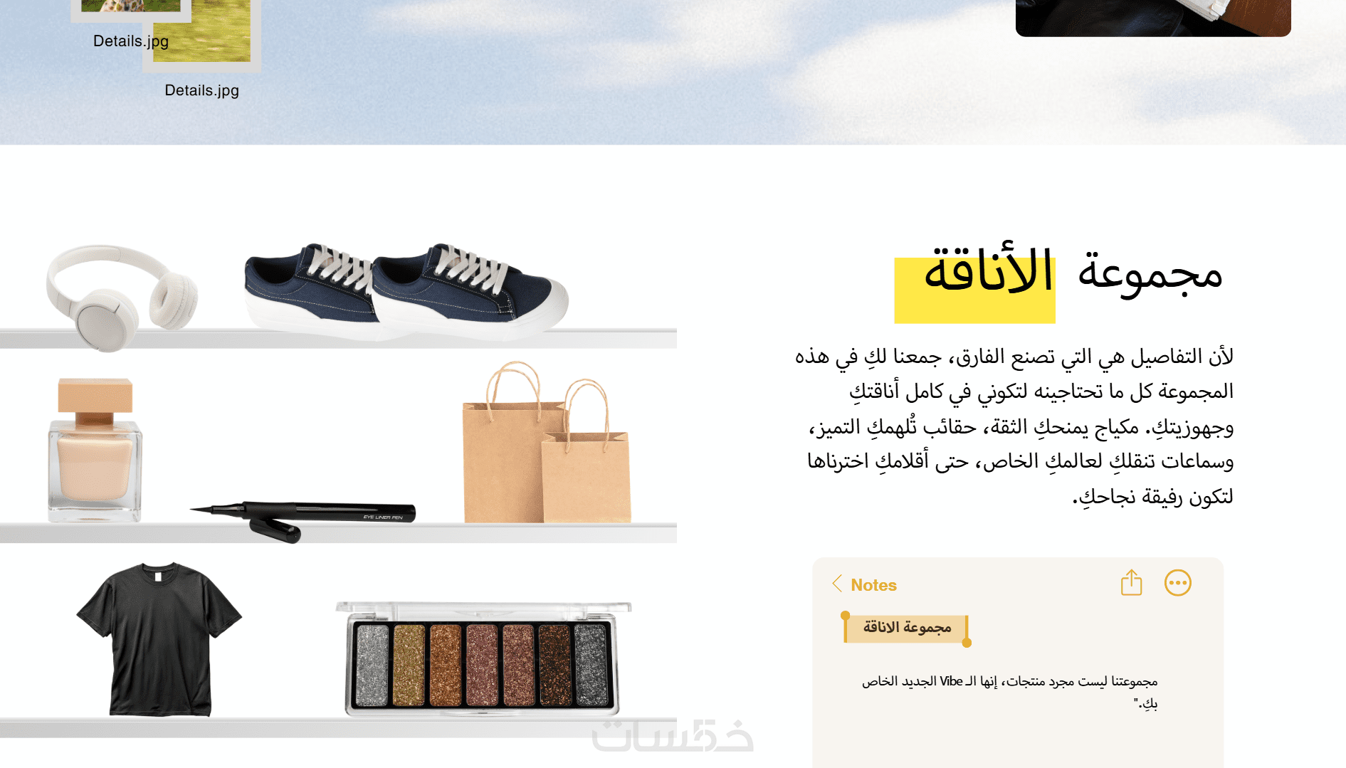 (واجهة العرض، المميزات أو الخدمات، آراء العملاء..).