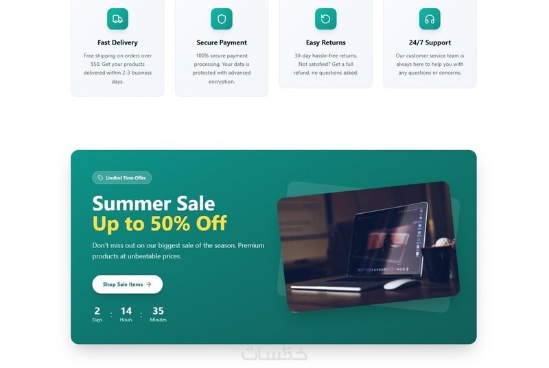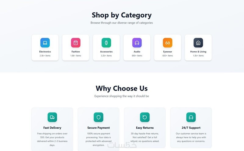 كود نظيف وسريع باستخدام HTML و CSS مع تجربة مستخدم مميزة تناسب جميع الأجهزة.