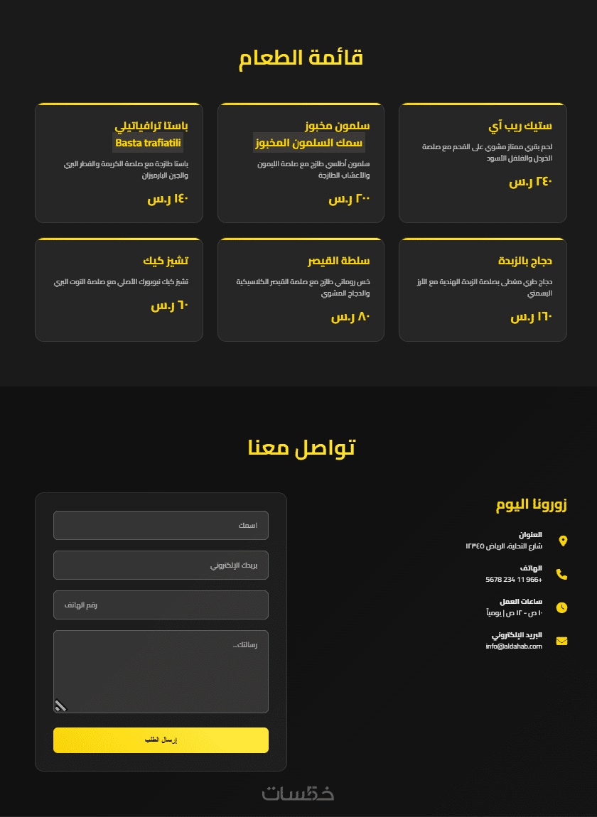 توزيع احترافي للأقسام (هيدر، مميزات، خدمات، معرض أعمال، نموذج اتصال).