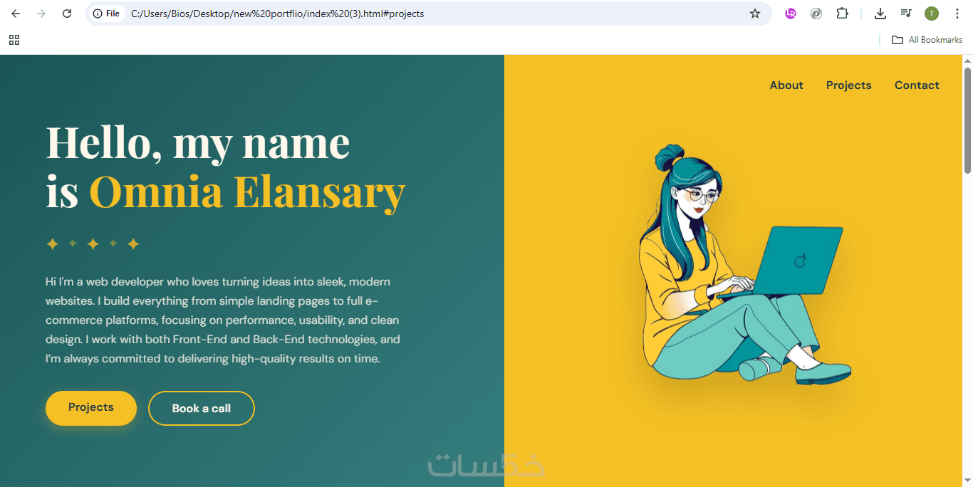 صفحة البورتفوليو ليست مجرد تصميم… بل وسيلة لعرض مهاراتك ومشاريعك بطريقة احترافية تجذب العملاء أو جهات العمل المحتملة. أقدّم لك تجربة متكاملة تعرض أعمالك بشكل منظم وجذاب، مع التركيز على تجربة المستخدم والتفاصيل البصرية التي تعكس هويتك الشخصية.