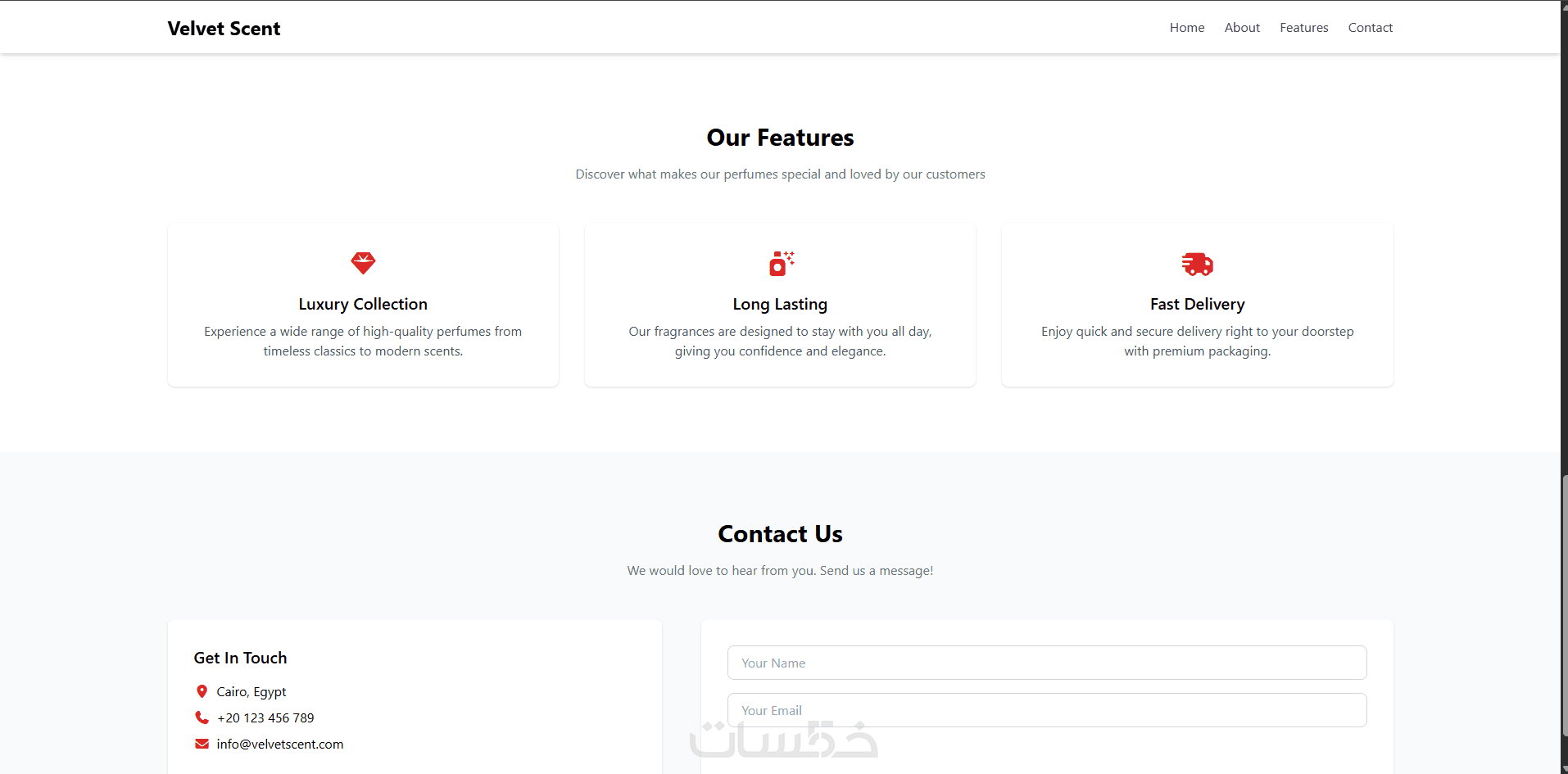أقدم لك تصميم Landing Page احترافي مخصص لمنتجات العطور، بتصميم عصري وألوان متناسقة وتجربة استخدام سهلة تساعد على عرض منتجاتك بشكل منظم وجذاب.