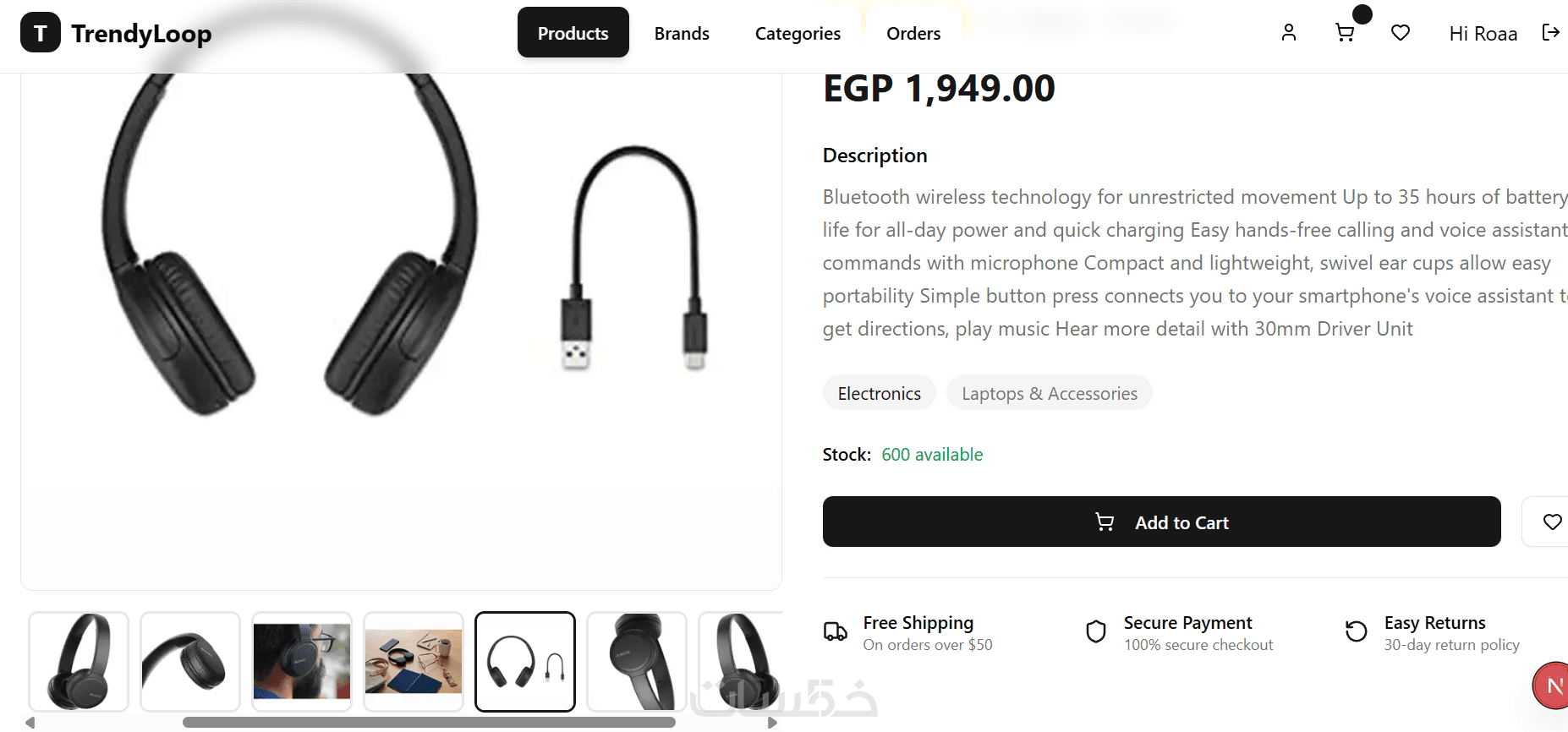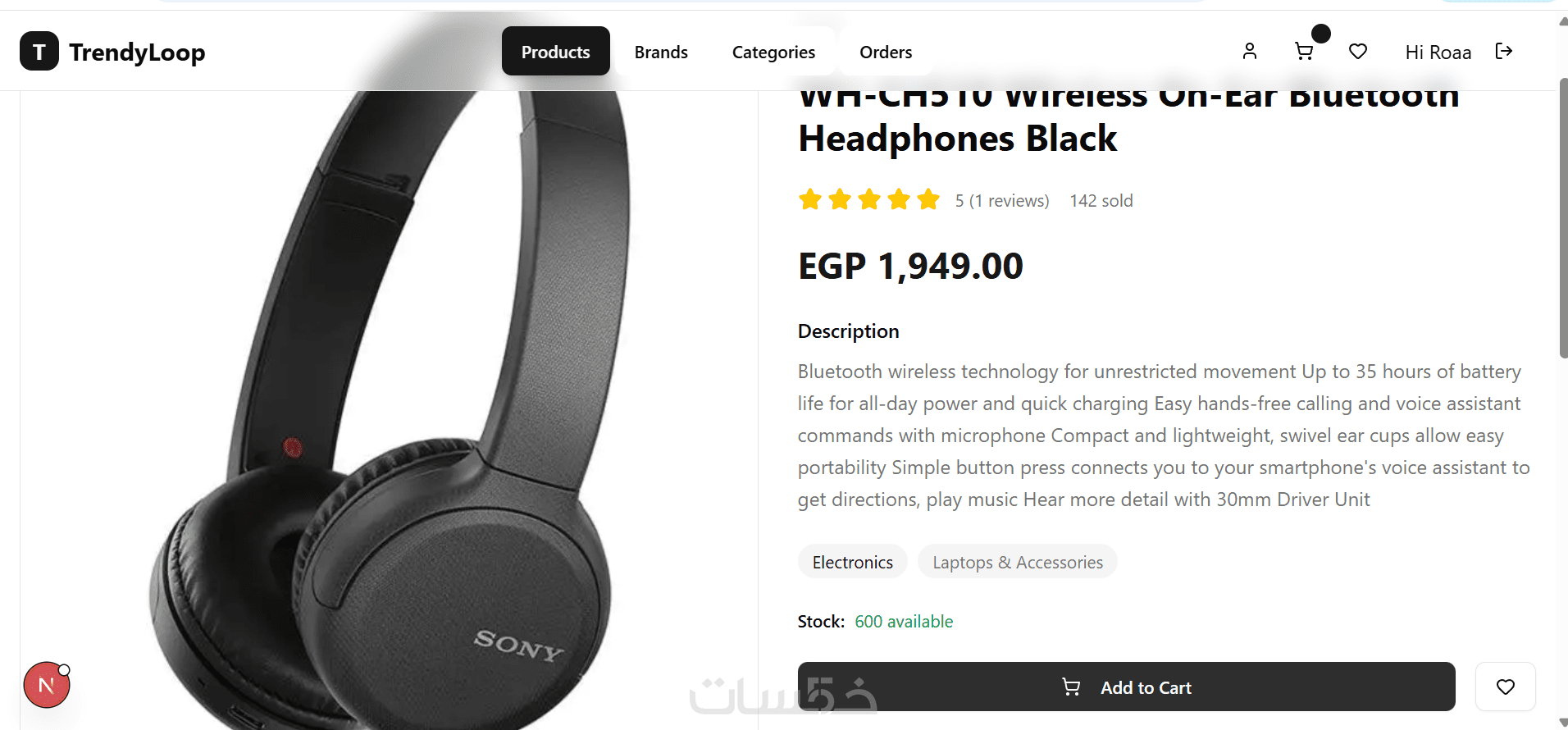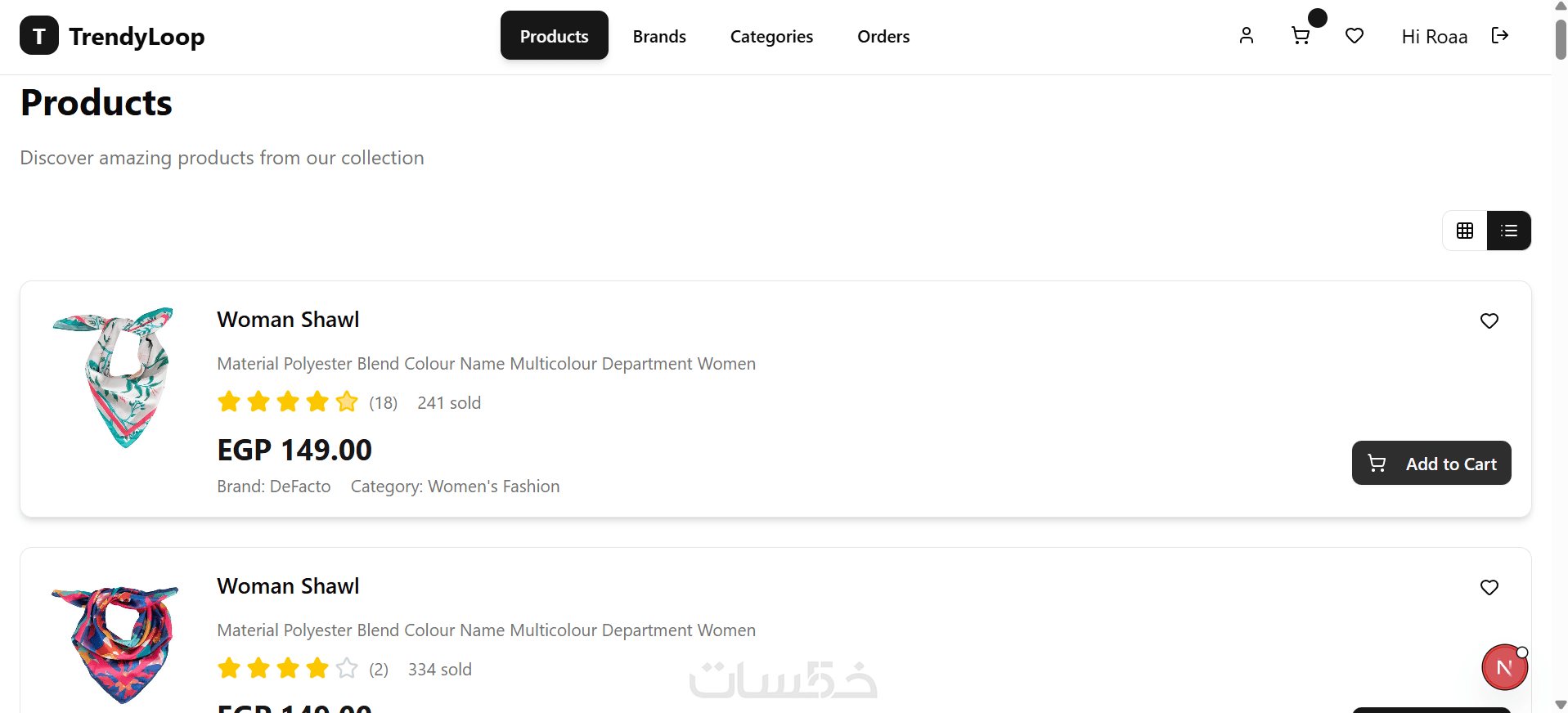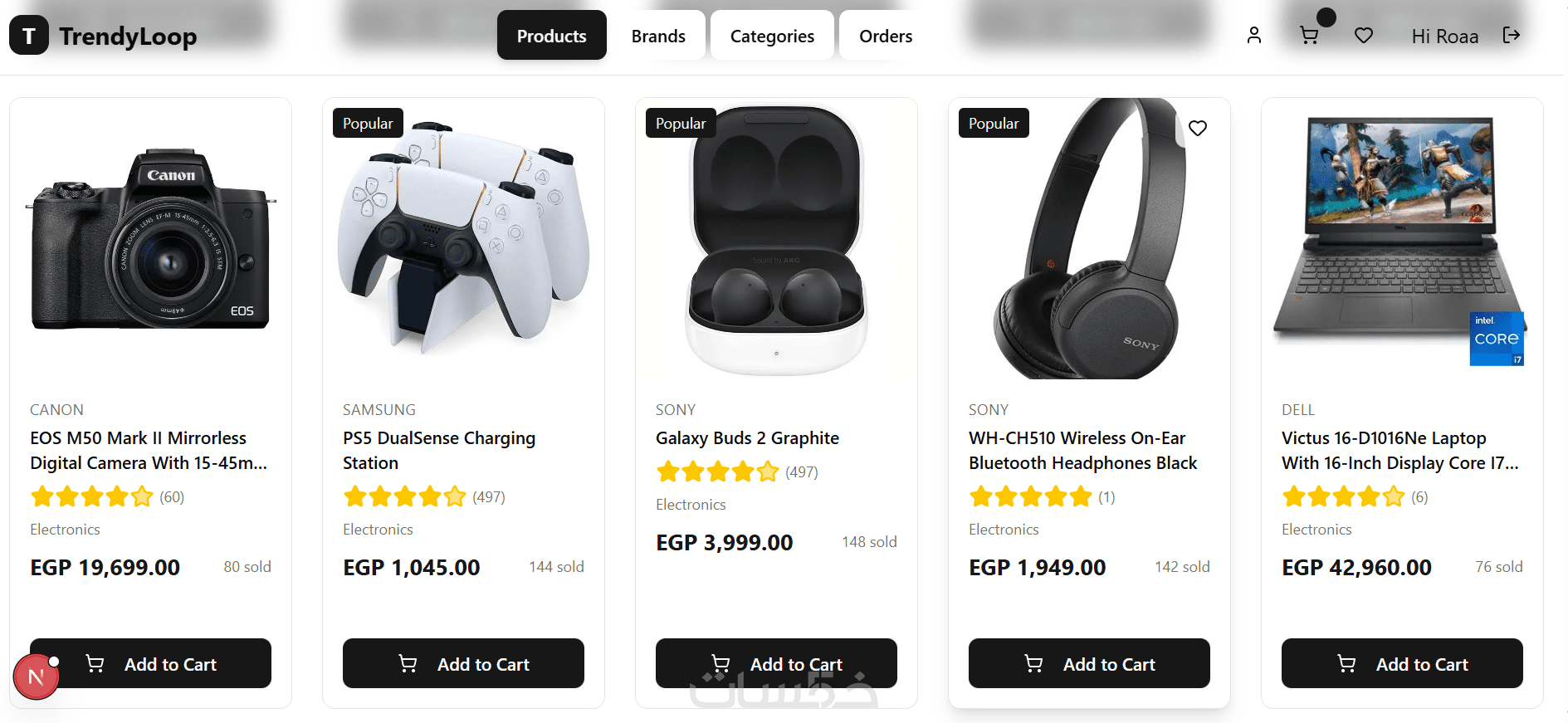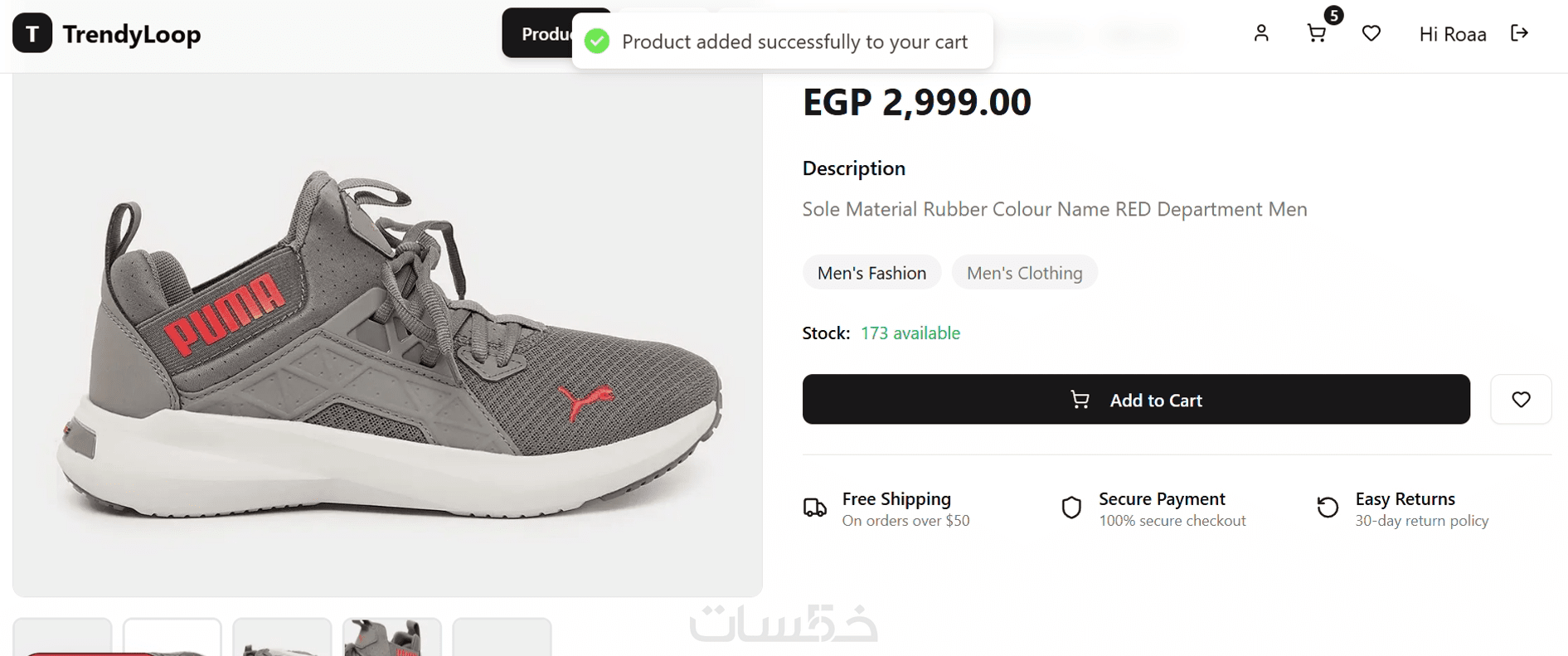 إضافة المنتج إلى السلة (Add to Cart) مع تفاعل مباشر