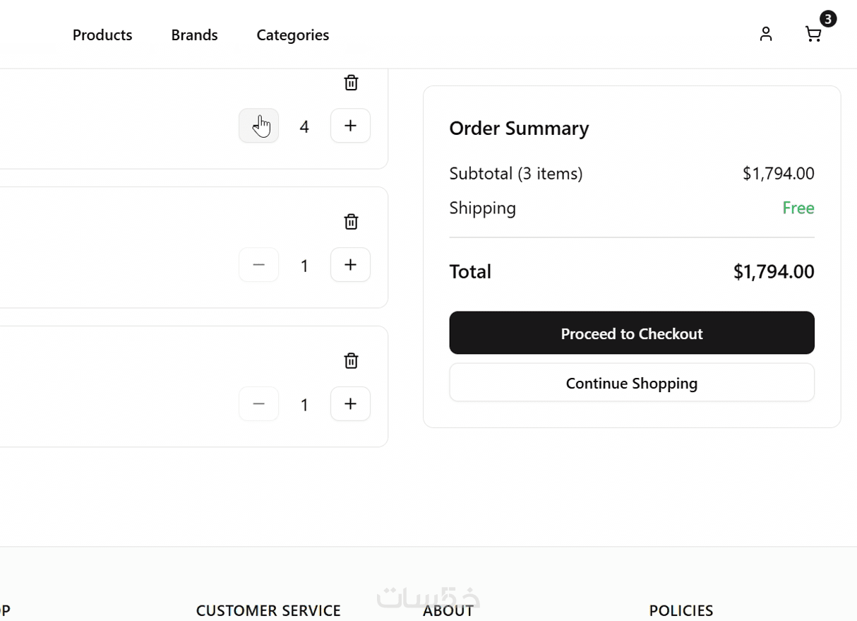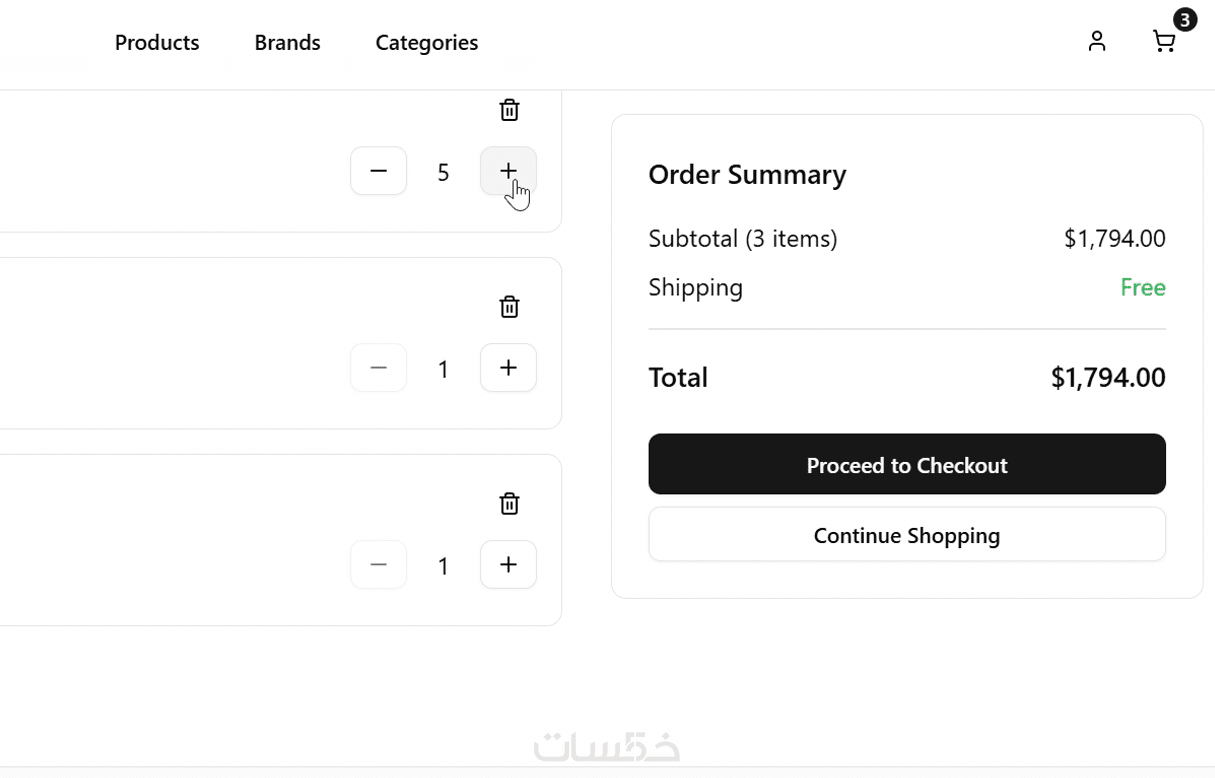إمكانية زيادة وتقليل عدد المنتجات بسهولة
