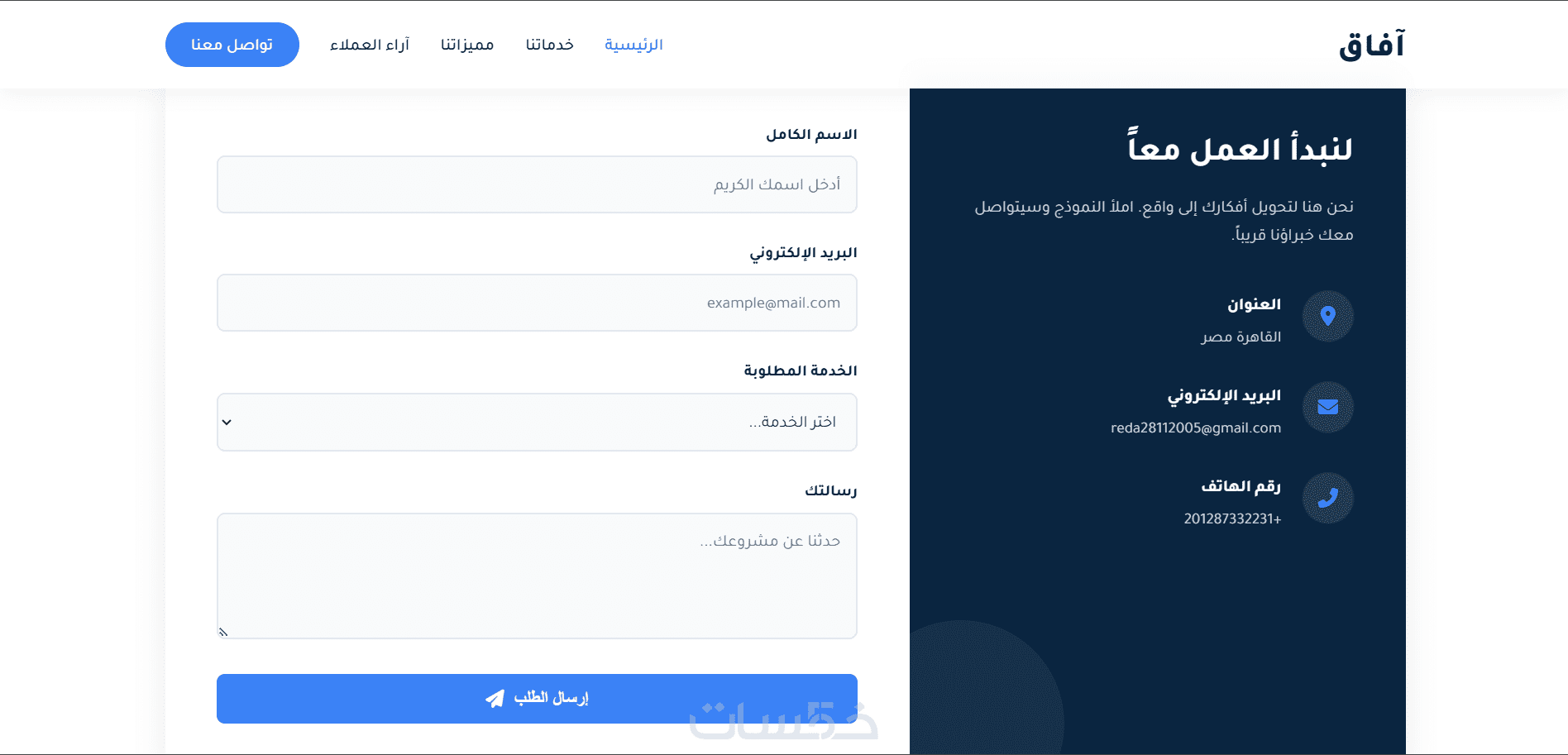 نموذج تواصل (اترك بيانات العميل وتواصل معه)