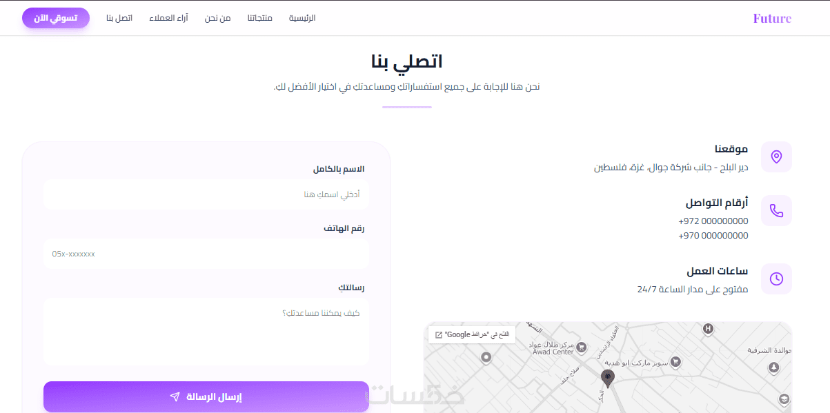 صفحة بسيطة ومفهومة لاي شخص حيث الوصول الى البائع بشكل سريع وبسيط عبر الواتس اب