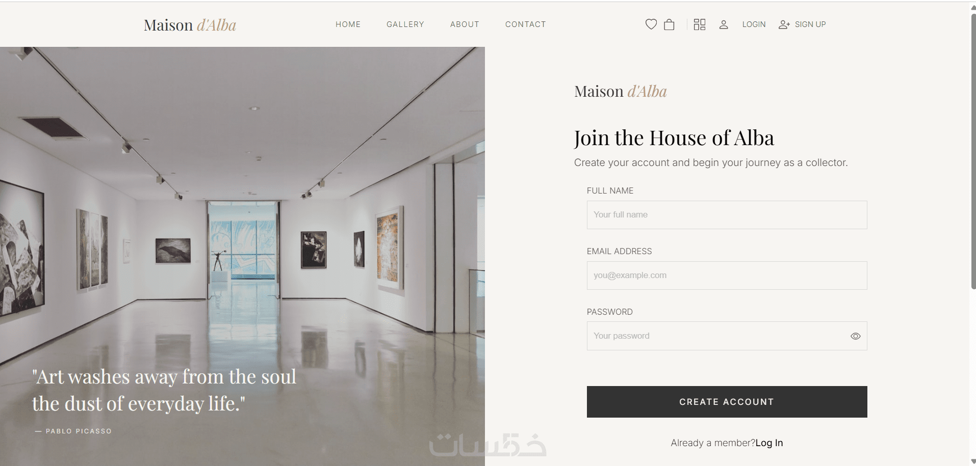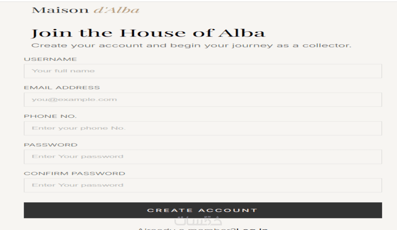 - نموذج تسجيل كامل (الاسم – الإيميل – كلمة المرور – تأكيد كلمة المرور)
