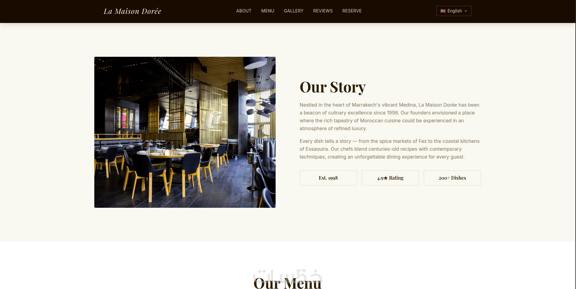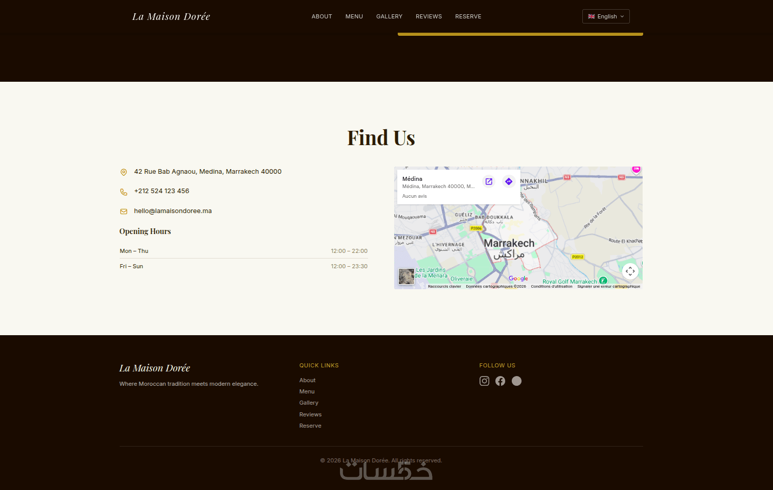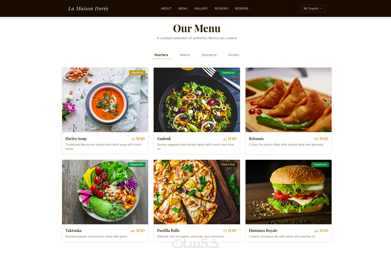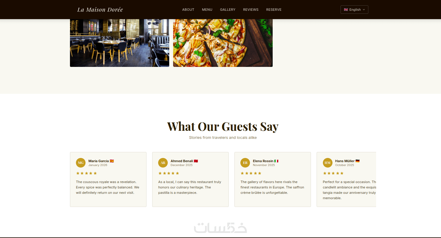 * تنظيم احترافي للأقسام (Hero، خدمات، آراء العملاء، تواصل...)