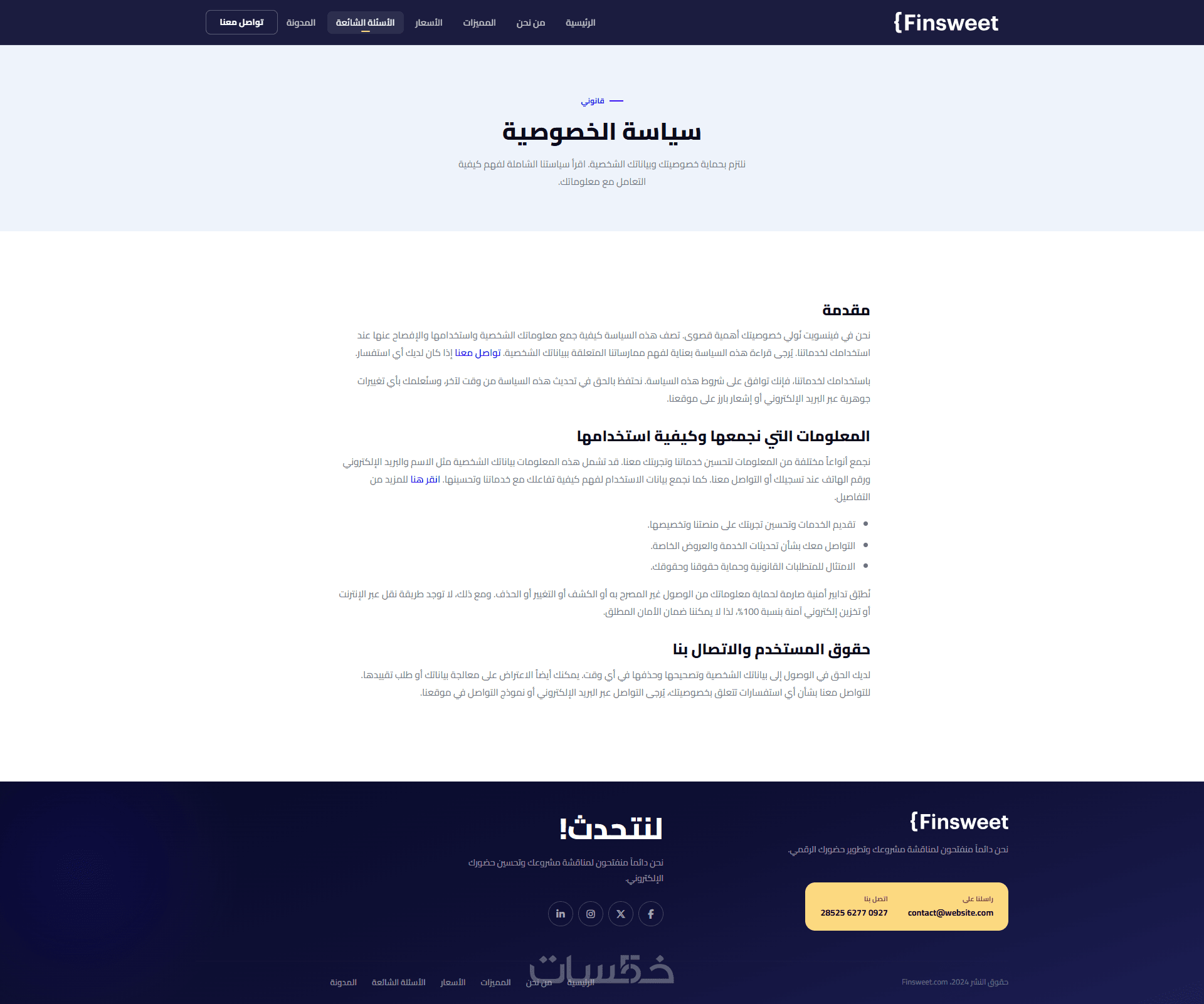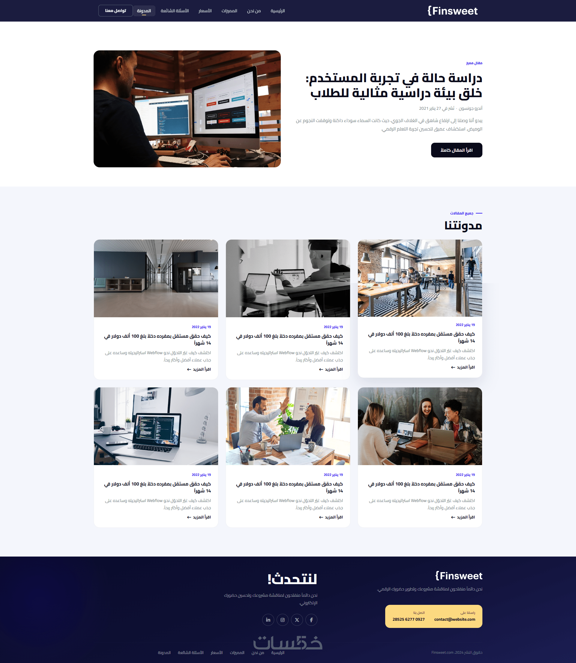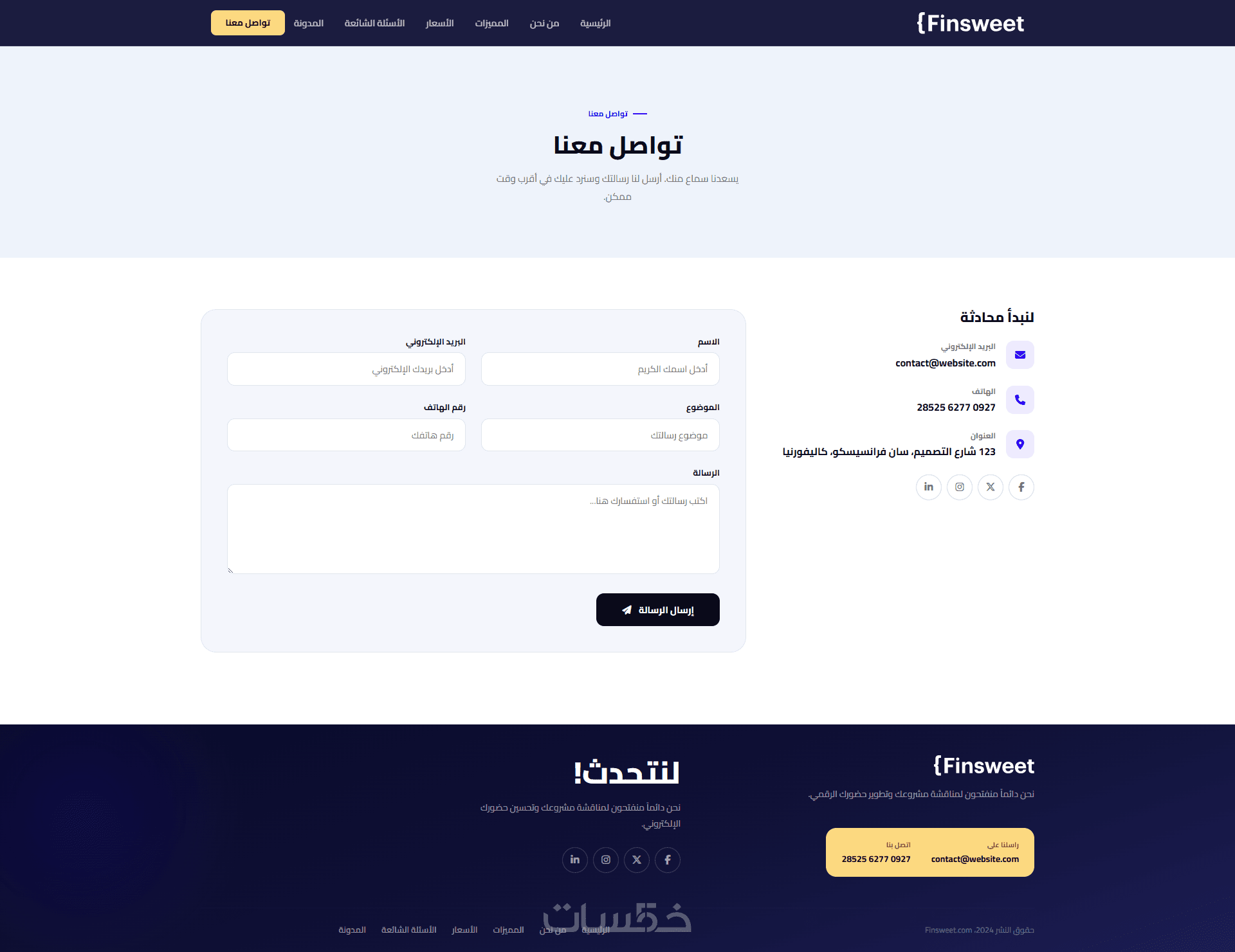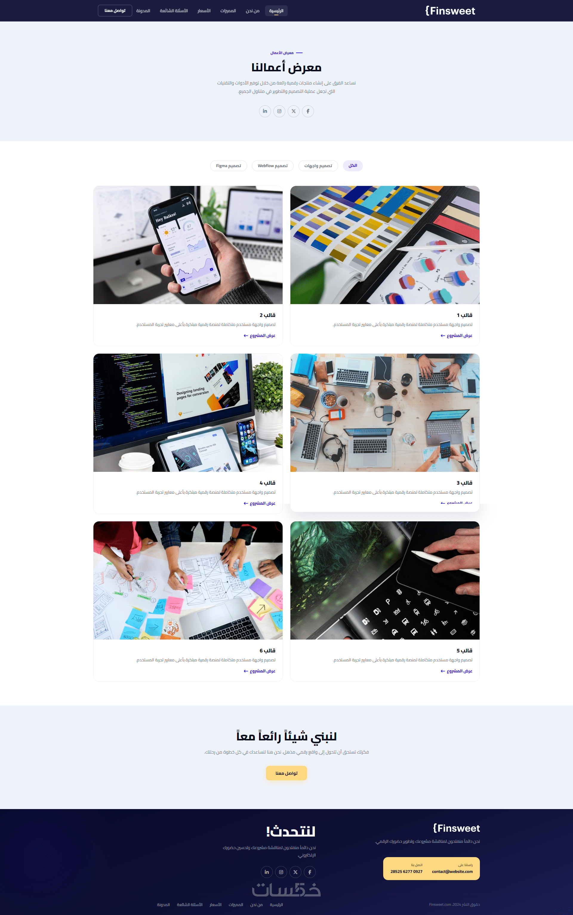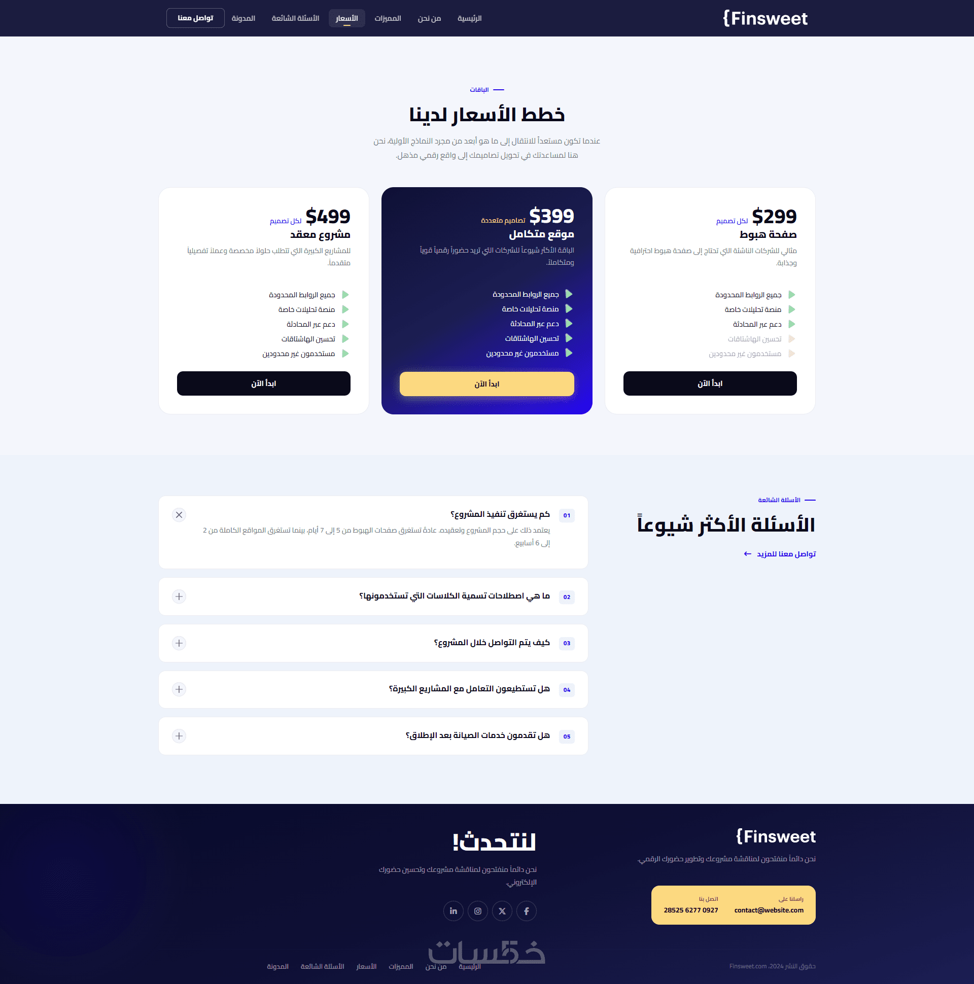 اضافة 5 صفحات اضافية للمشروع (الاسئلة الشائعة, المدونة, تواصل معنا, معرض الاعمال, استكمال المدونة)