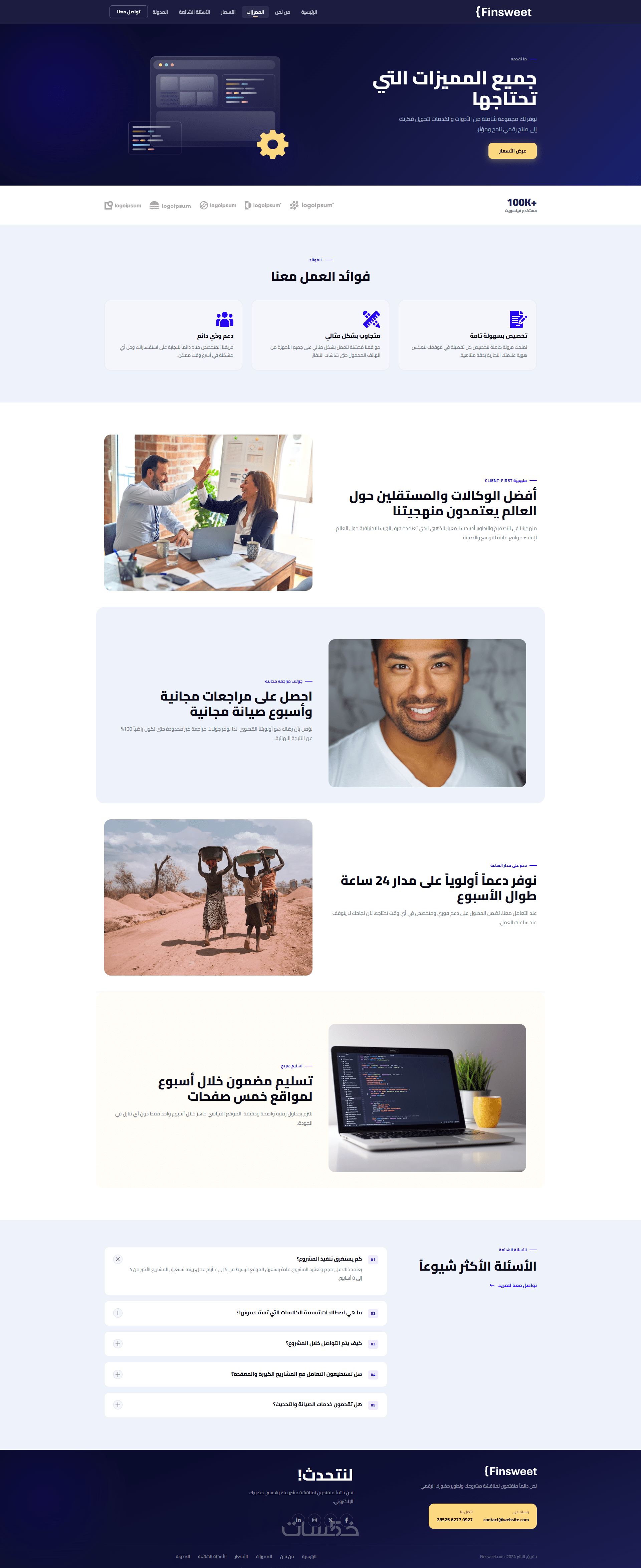 - استخدام تقنيات HTML5 , CSS3 , Bootstrap and JavaScript مع امكانية التوسع مستقبلا اذا رغبت بتقنيات اشمل مثل React or Laravel.