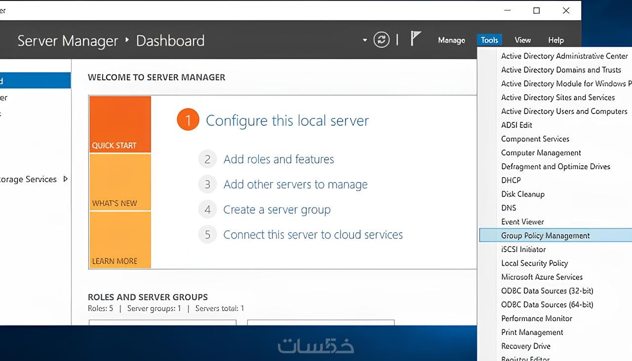 تثبيت دورين (2 Roles) مثل: ضبط 3 سياسات GPO، أو إعداد مخدم ملفات File Server.