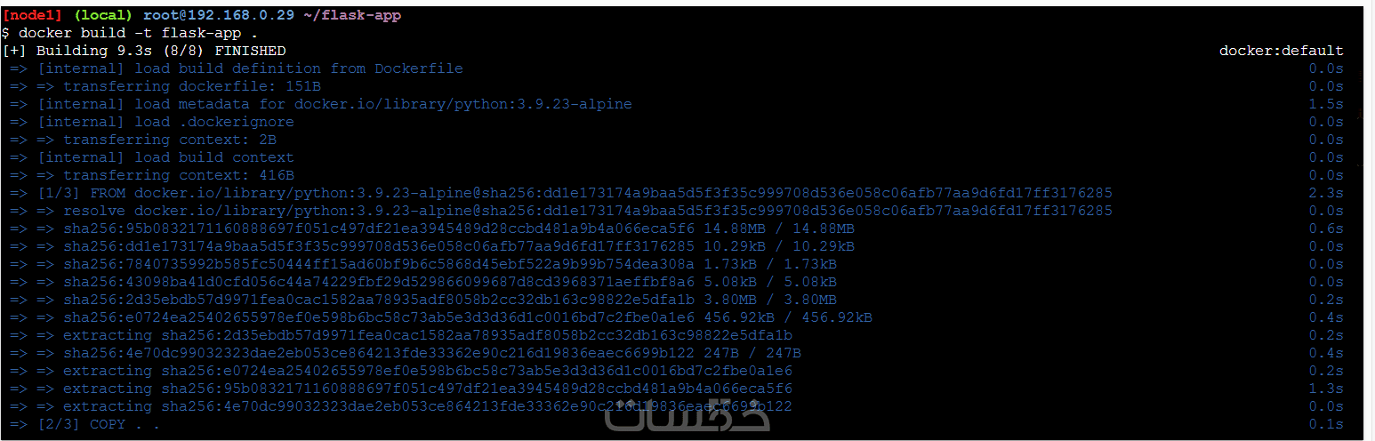سأقوم ببناء الصورة (Image) الخاصة بالمشروع وتشغيلها للتأكد من عمل التطبيق بدون مشاكل.