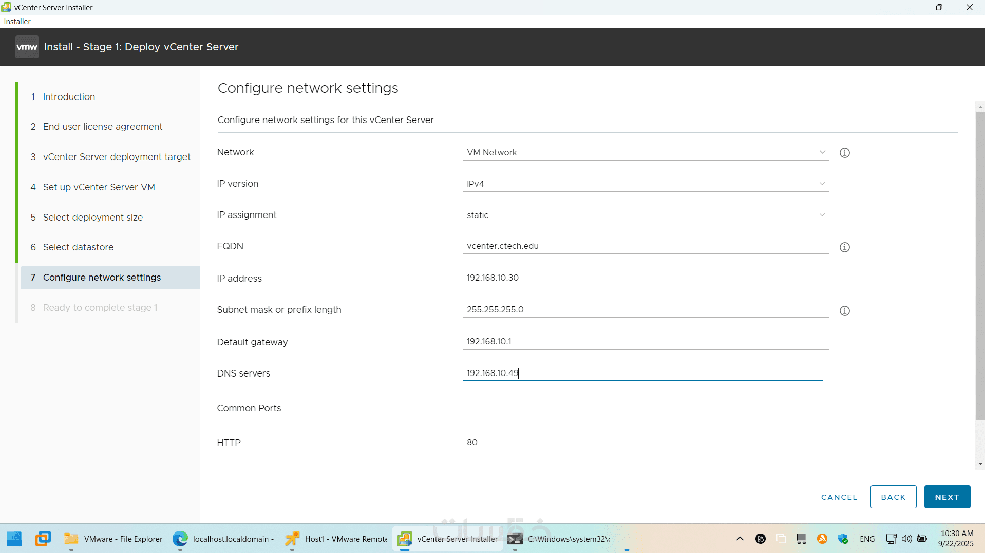 تكوين الشبكات (vSwitch / VLAN) وربطها بشكل صحيح على كل ال VMs