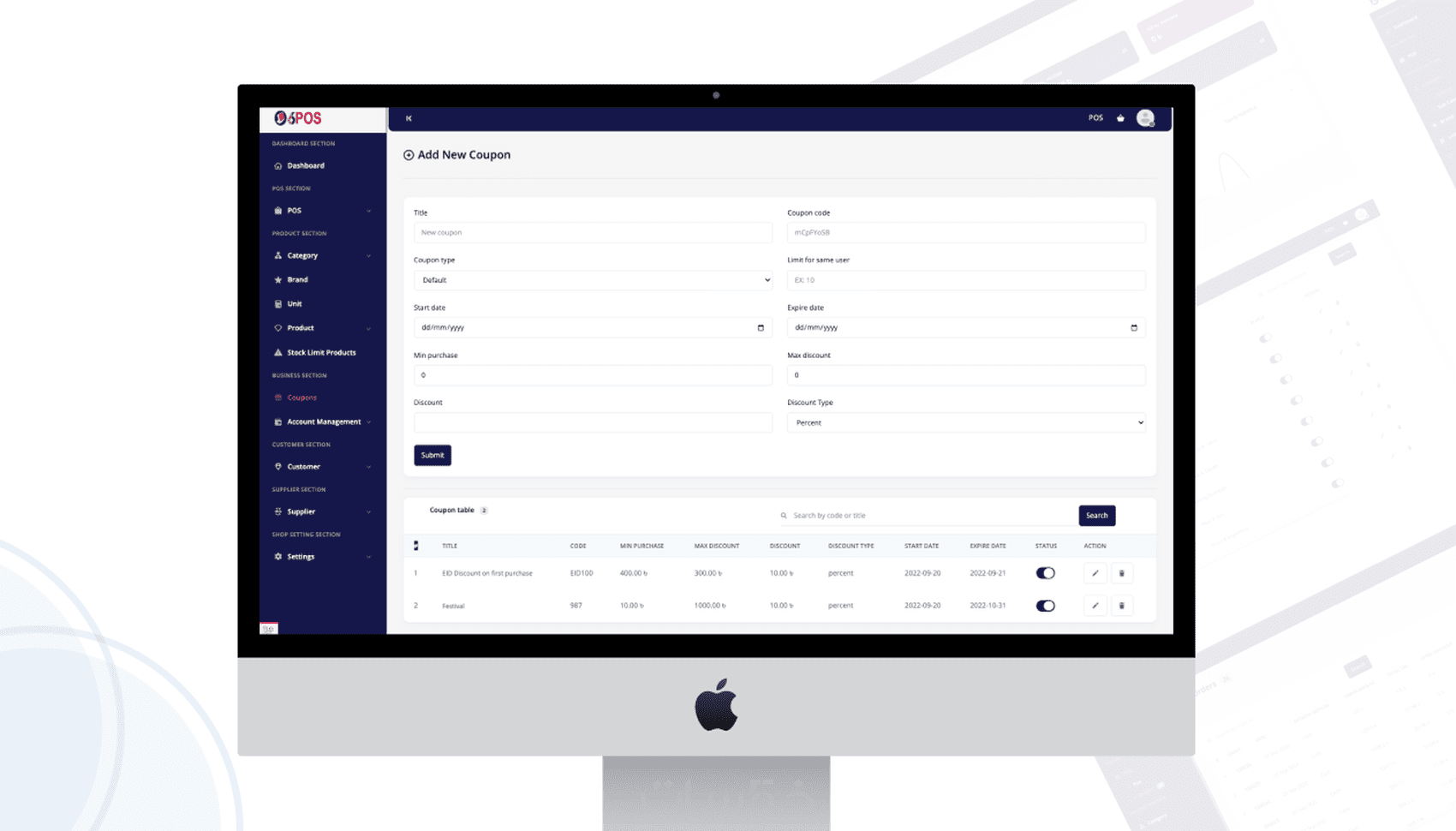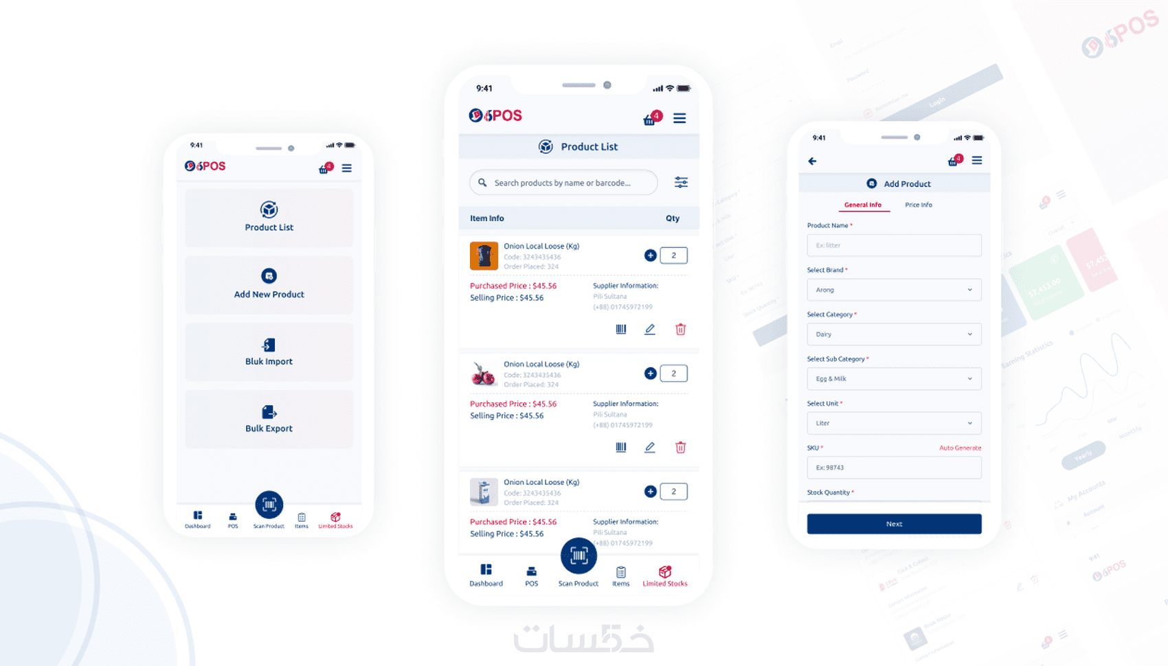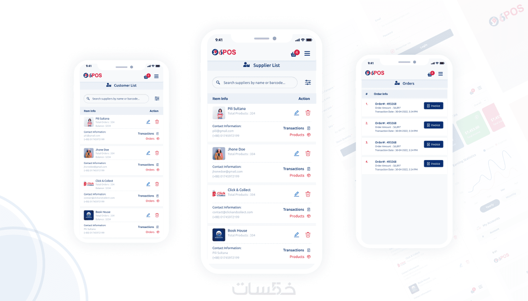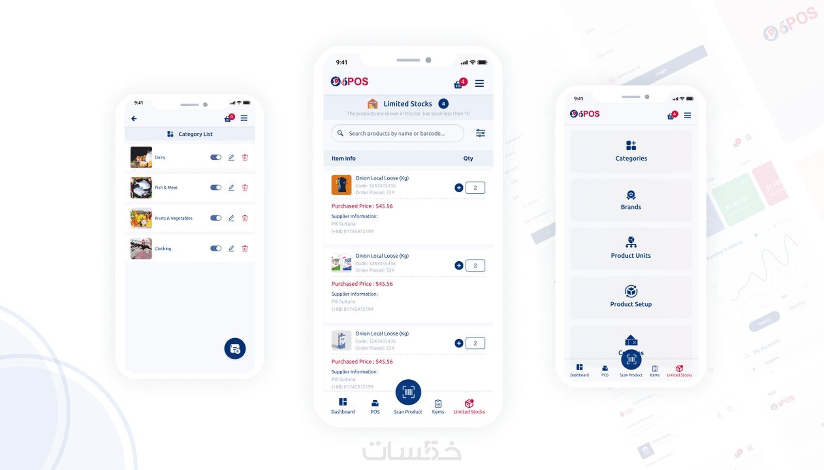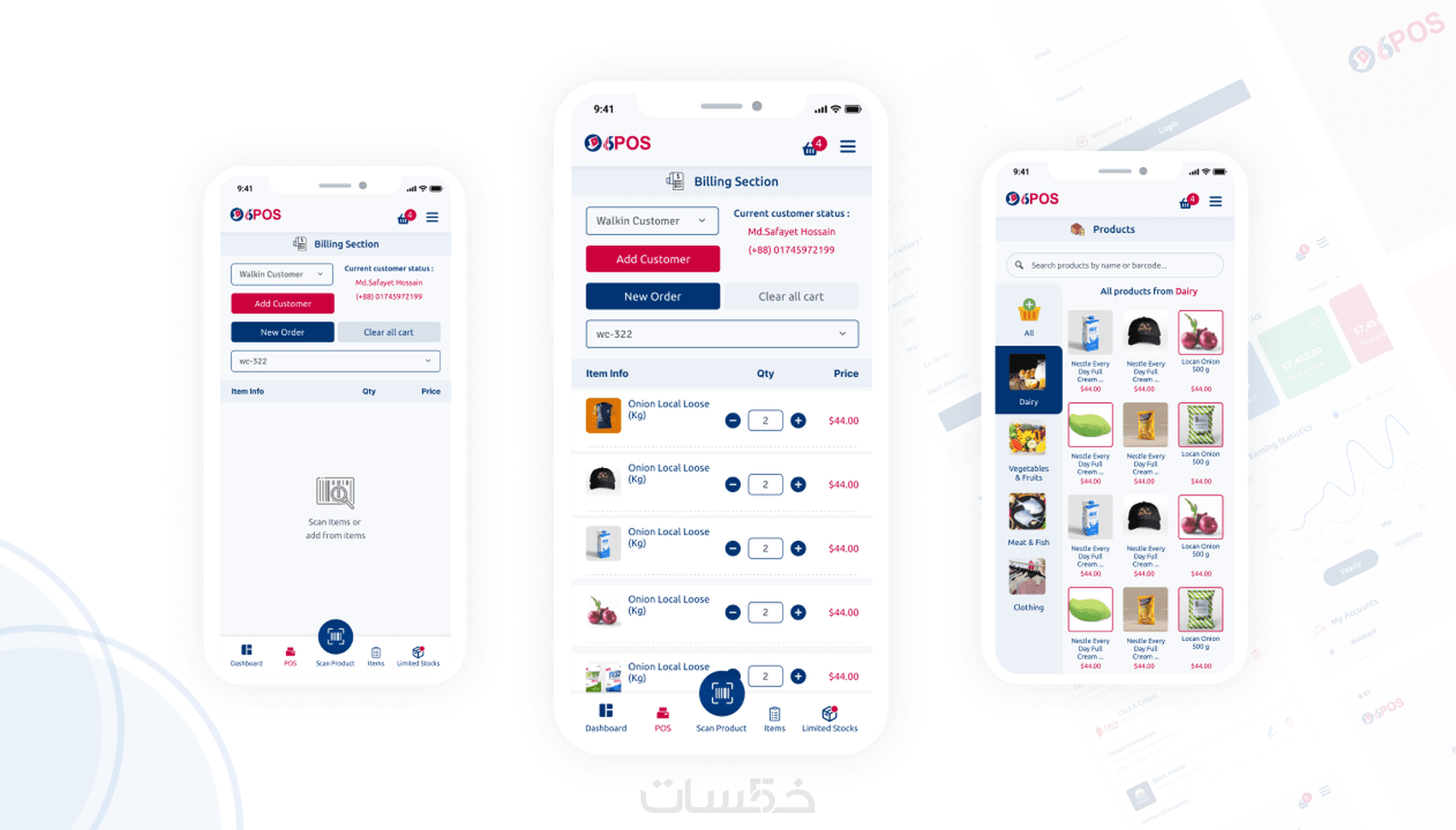 إن تخصص 6POS هو أنه يمكن للمستخدمين إدارة كل شيء مثل المنتجات والموردين والعملاء ونقاط البيع نفسها من خلال تطبيق Flutter للهاتف المحمول بالإضافة إلى واجهة Web POS الخاصة .