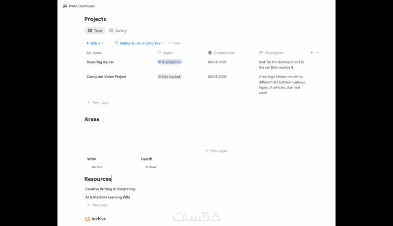 نظام PARA جاهز على Notion