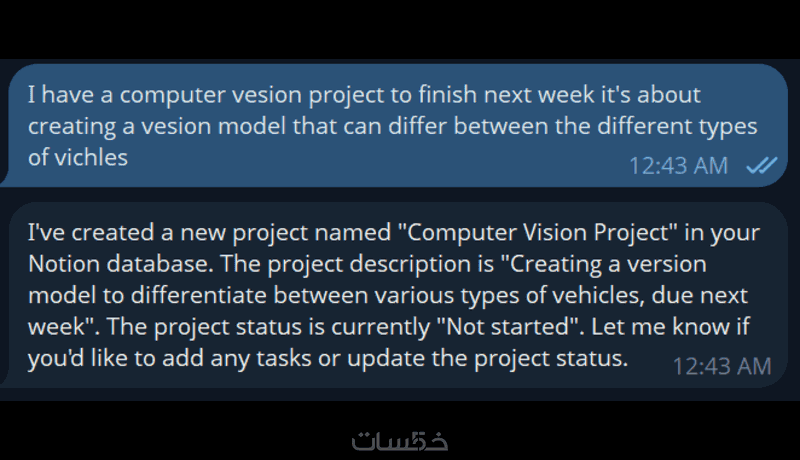في حالة اختيار إضافة المساعد الذكي عبر تيليجرام، يتم ربط النظام بخدمة خارجية (Server) لاستضافة وتشغيل التكامل بين تيليجرام وNotion، ويتم إعداد هذه البيئة بالكامل من جانبي بحيث تعمل بشكل مستقر، ولا يتطلب منك أي إعداد تقني معقد، فقط توفير البيانات وربط الحسابات عند الحاجة