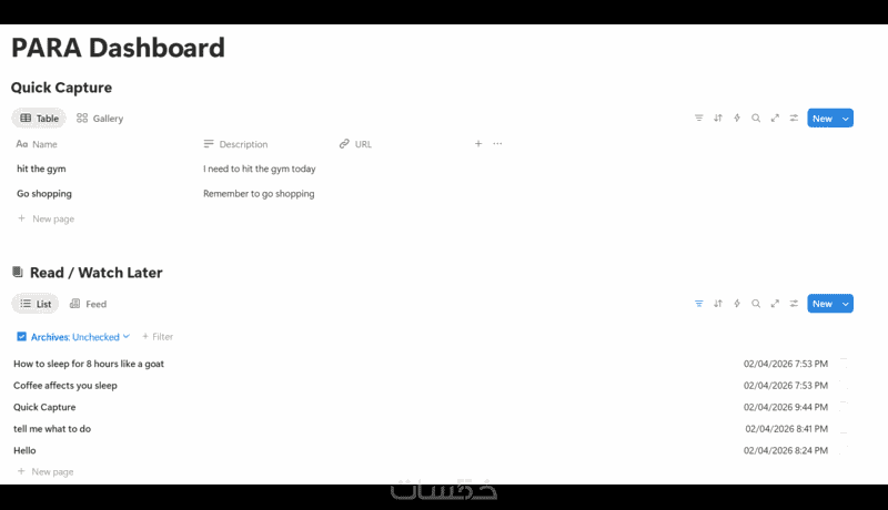 سأقوم بتخصيص نظام PARA بالكامل ليناسب طبيعة حياتك او عملك باضافة حتي 5 قواعد بينات داخل النظام