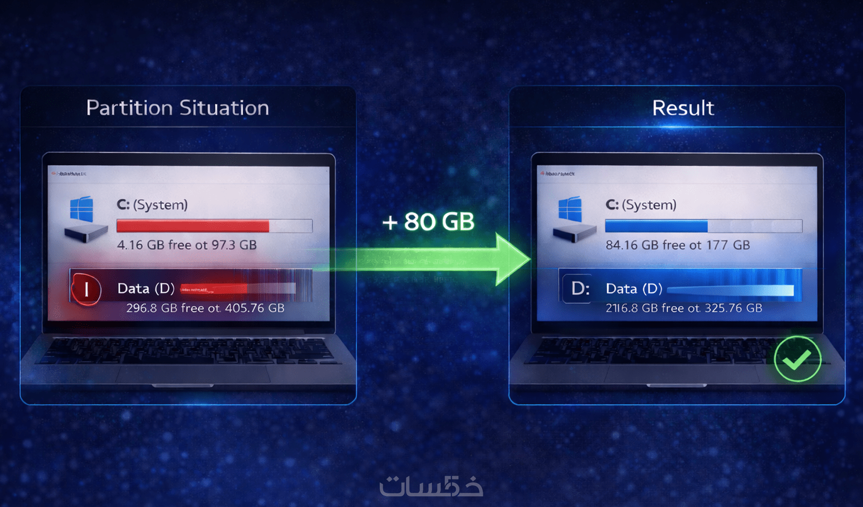 أقدم لك خدمة زيادة مساحة قرص C لجهاز كمبيوتر واحد عن بعد بدون فورمات وبطريقة آمنة حسب حالة الجهاز.