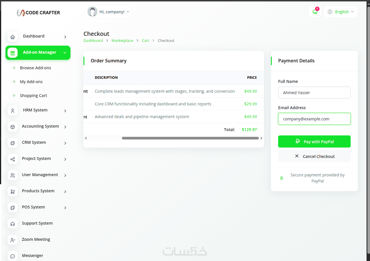 ربط بوابات الدفع PayPal ,Stripe, VISA بموقعك