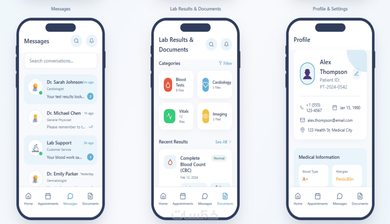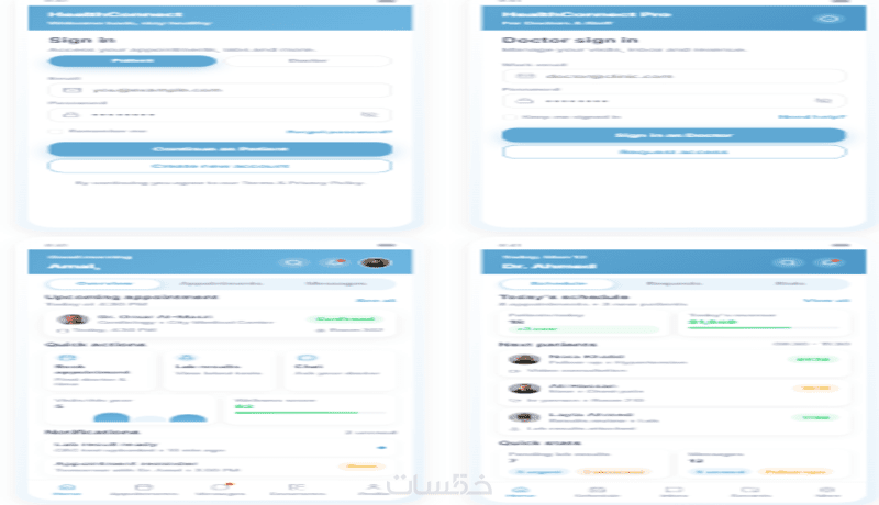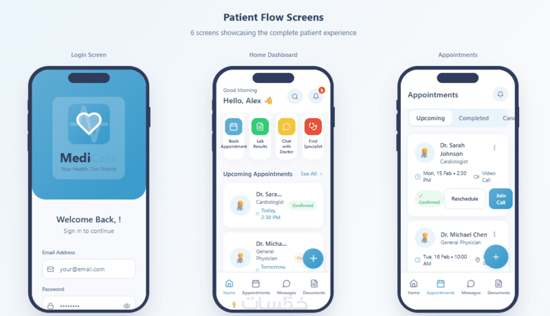 (مثل: شاشة تسجيل الدخول – حجز موعد – الملف الشخصي – قائمة المواعيد… إلخ)