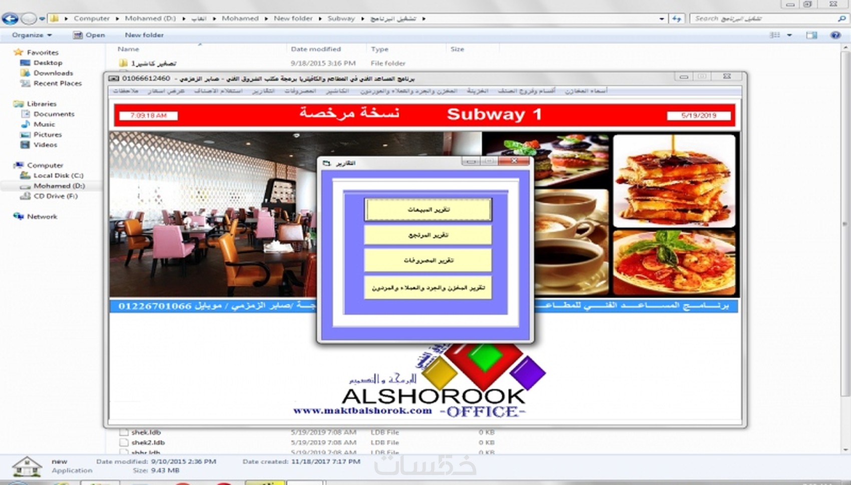 برنامج إدارة وتشغيل المطاعم والكافيهات والسوبر ماركت ومحلات الملابس البرنامج فيه مخزن وجرد وعملاء دليفري وفيه باركود البرنامج سهل ويشتغل على اي جهاز كمبيوتر مهما كانت إمكانياته حتى لو ضعيف جداااا