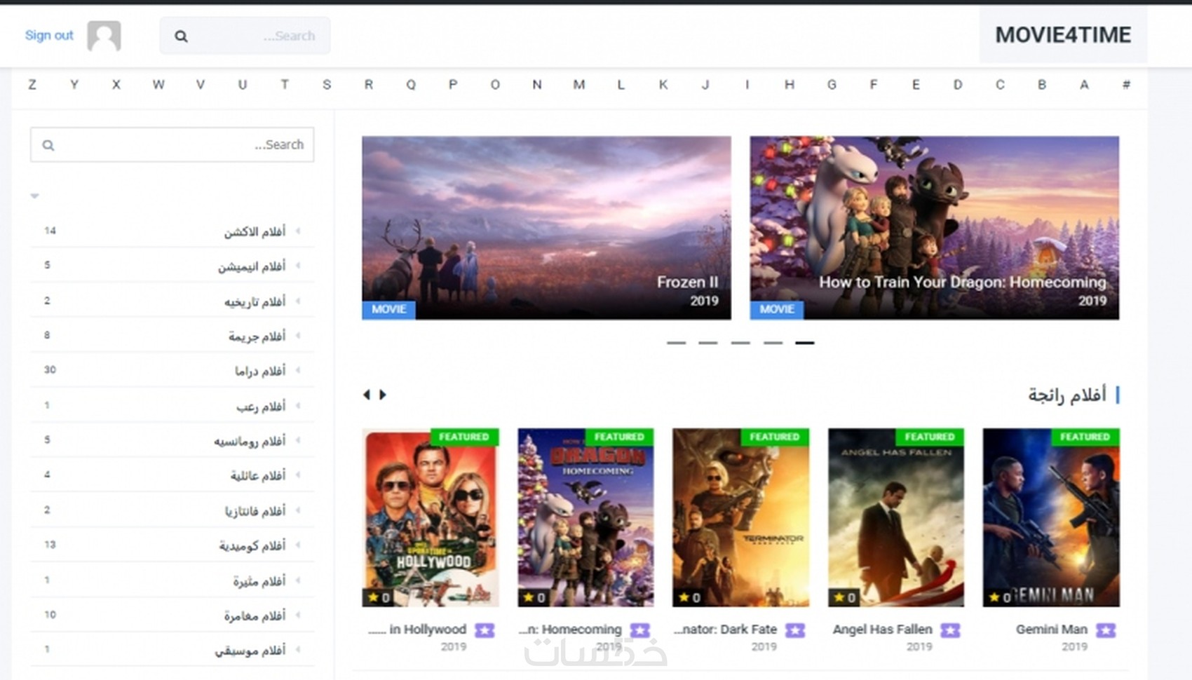 -يتميز القالب بطريقة البحث بالاحرف عندما تضع الموس او ضغط علي الحرف بطريقة مطوله سوف يأتيك الفيلم او المسلسل الذي أوله الحرف الذي ضغت عليه